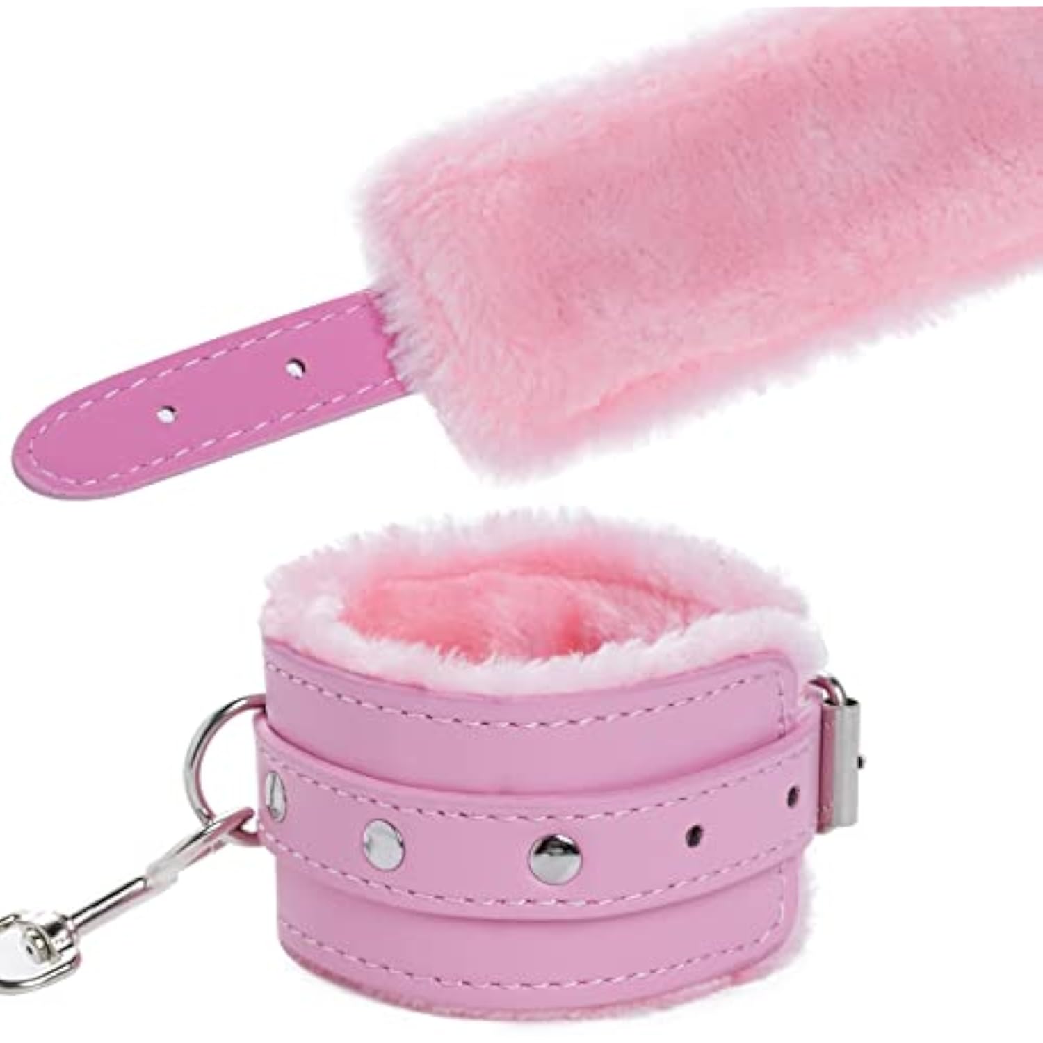 Adjustable Handcuffs Ankle Bracelets Sm Adult Plush Pu Leather Bondage Fetish Handcuffs Kit Cuff Restraint Set Sex Toy, Handcuff Restraints Adult Sex Toys Pink
