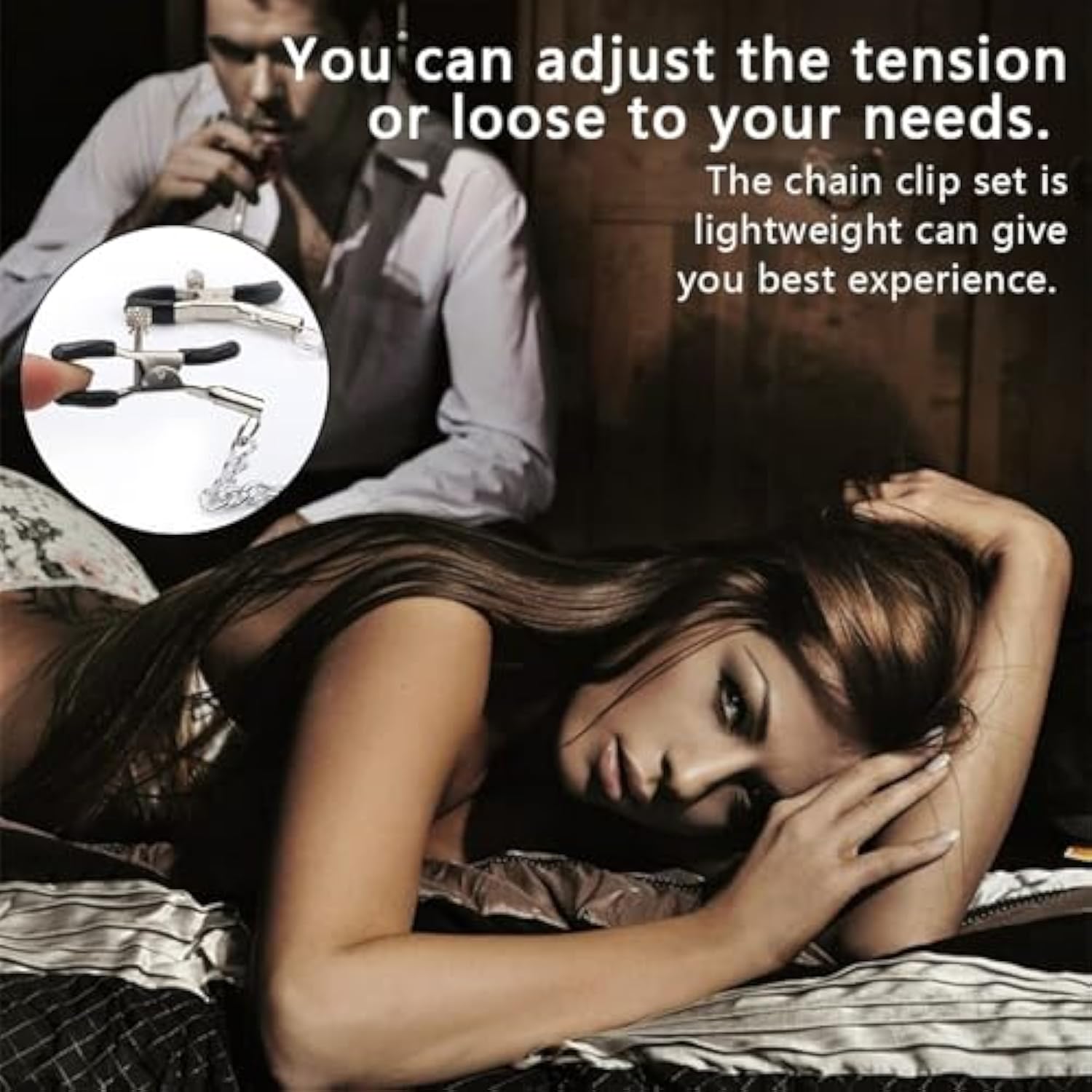 | Comfortable And Non Slip Nipple Clips - These Nipple Clips Are Designed With Metal Clips And Wrapped In A Rubber Shell, Providing A Gentle Pinching Sensation Without Scratching The Skin. The Rubber Shell Is Super Soft, Ensuring A Pleasant Experience. | | Adjustable Fixture Size - You Can Easily Adjust The Tightness Of The Fixture By Turning The Screws, Thereby Customizing The Pressure According To Your Preferences. It Is Suitable For All Levels Of Nipples, Avoiding The Feeling Of Being Too Loose And Too Tight. These Clips Are Suitable For Beginners And Experienced Users. | | Easy To Carry: Nipple Clamps Are Small, Light And Easy To Carry, And Can Massage The Nipples And Promote Blood Circulation To The Breasts. | | High Quality Material: Our Metal Nipple Clamps Are Made Of High Quality Alloy And Soft Silicone, Metal Chains And Bells, They Are Smooth And Safe, Lead And Nickel Free, No Fading And No Deformation. | | Top Secret Protection?If You Have Any Questions, Please Feel Free To