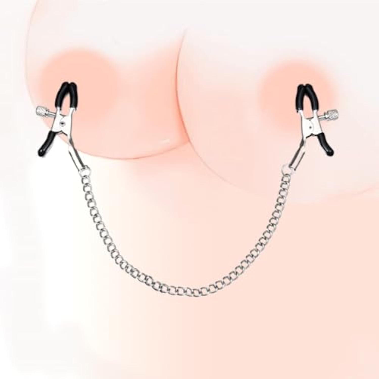 Adjustable Nipple Clamps Breast Clip And Body Ring Body Clamps Nipple Suckers Non-Piercing Chain Stainless Steel For Women Faux Body Jewelry (Black)