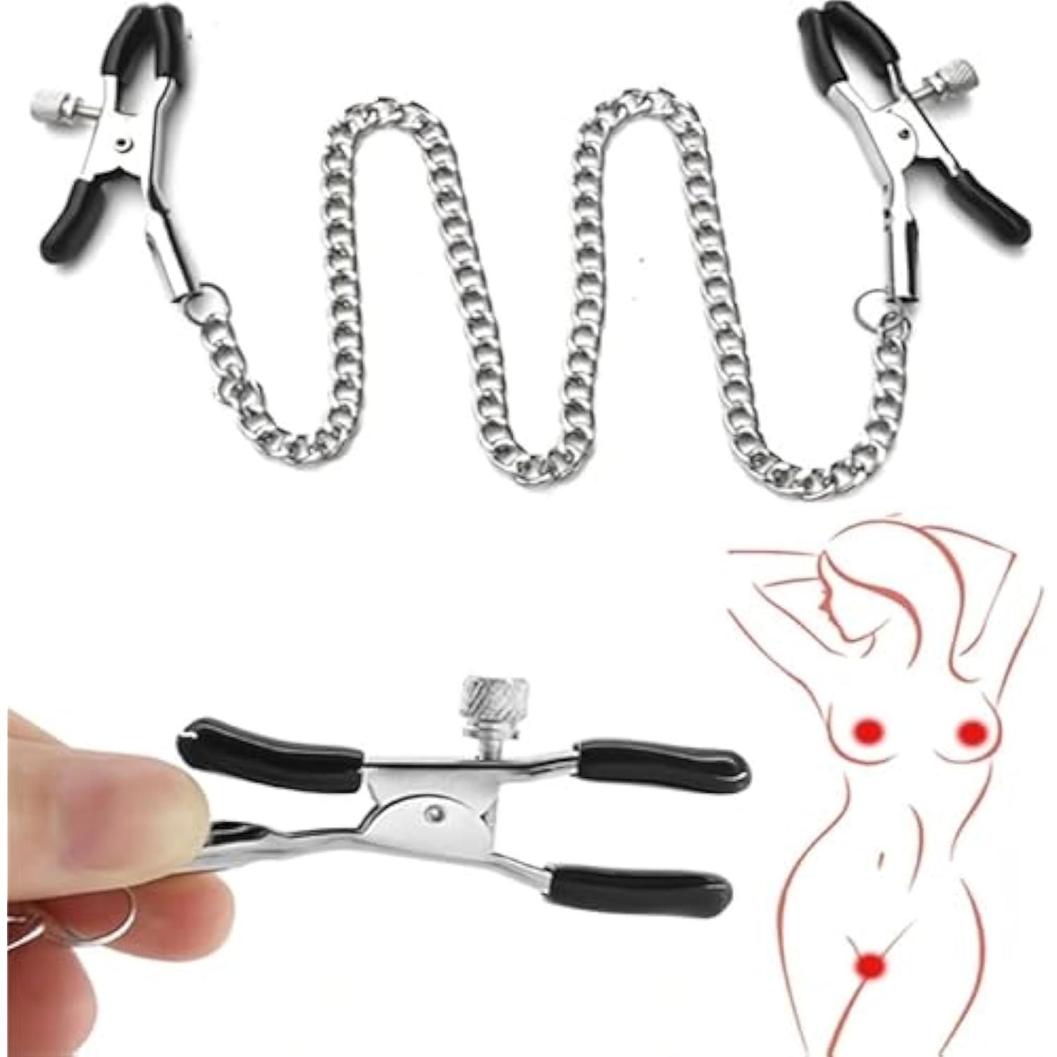 Adjustable Nipple Toys Nipple Clamps With Chain, Non-Piercing Nipple Clips For Sexual Pleasure Breast Flirting Stimulation, Bdsm Bondage Sexual Wellness Adult Sex Toys For Women Bedroom Play
