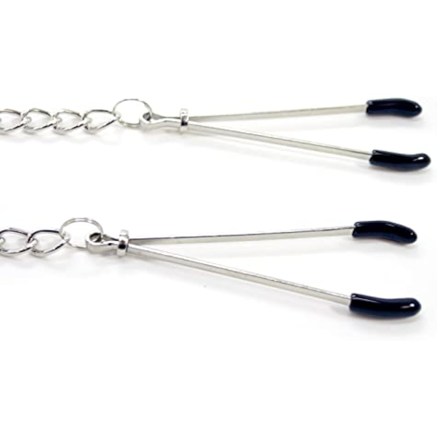 Adjustable Tweezer Style Nipple Clamps For Bdsm Experience - Soft Rubber Tips, Metal Chain For Added Weight & Sensitivity - Perfect For Beginners And Experienced Users - Bondage Kink Collection