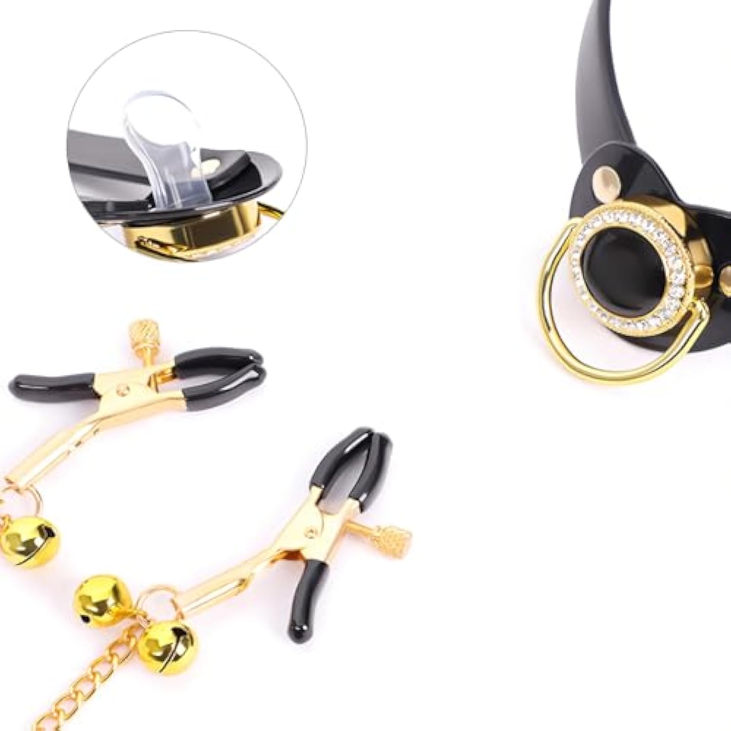 Adult Bdsm Gags With Chain Clips Sex Pacifier Balls Female Breast Bells Nipple Clips?Collars, Gags, Restraints, Nipple Clamps, Bondage, Play Props