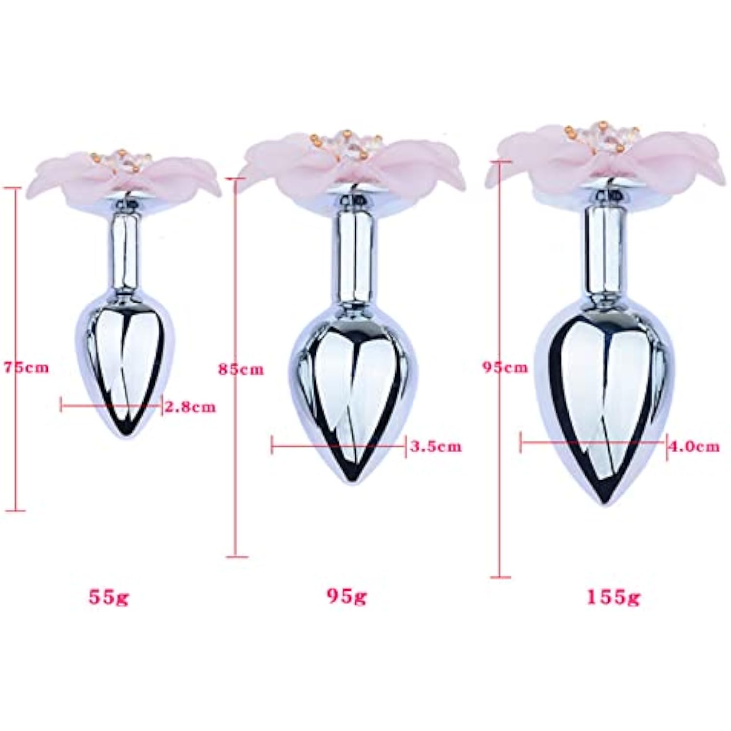 Adult Metal Anal Plug Flower Base Butt Plug Simulated Large Petal Bud Stainless Steel Anal Plug Set(Pink)