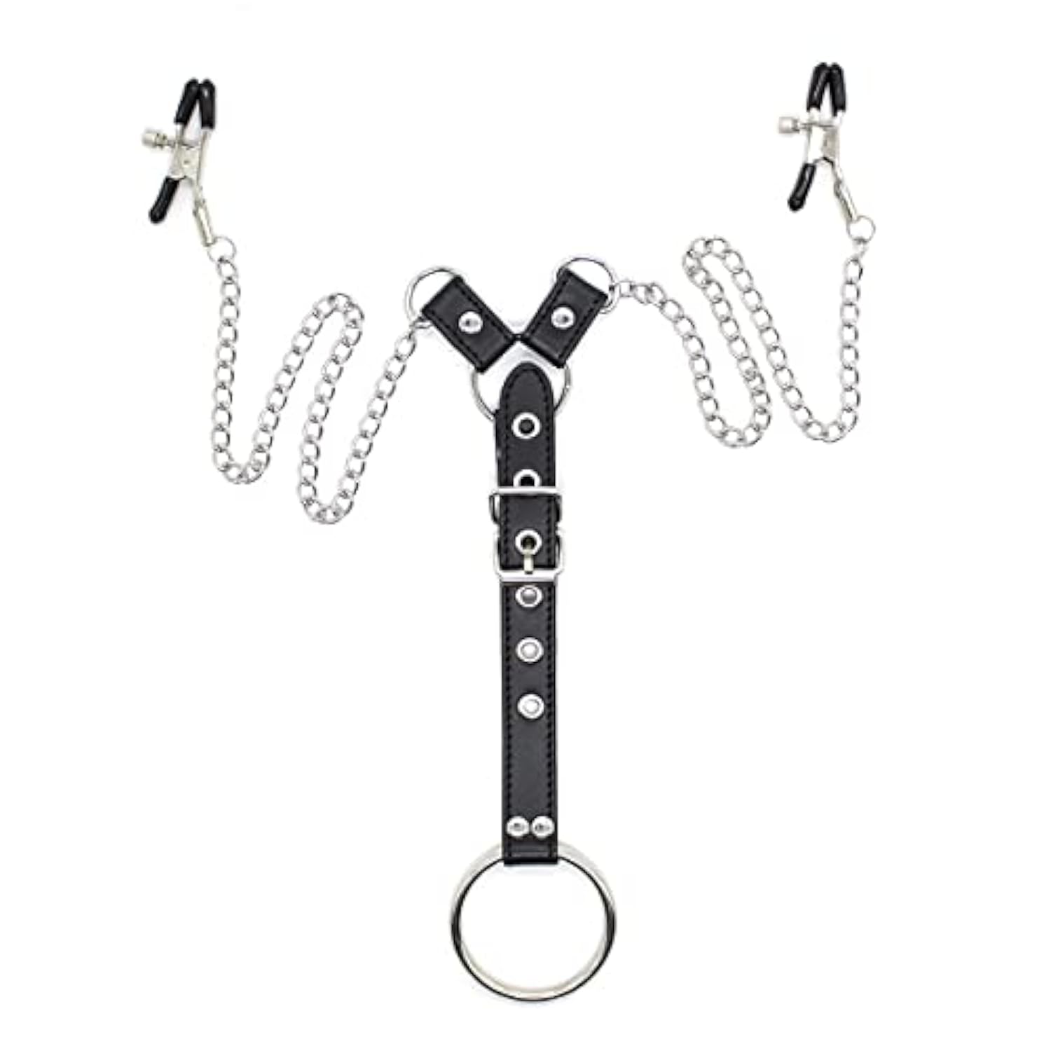 Adult Sex Props Chastity Lock Series Nipple Clip Ring Set Adjustable Length Male Chastity Props Lock Fine Ring Set