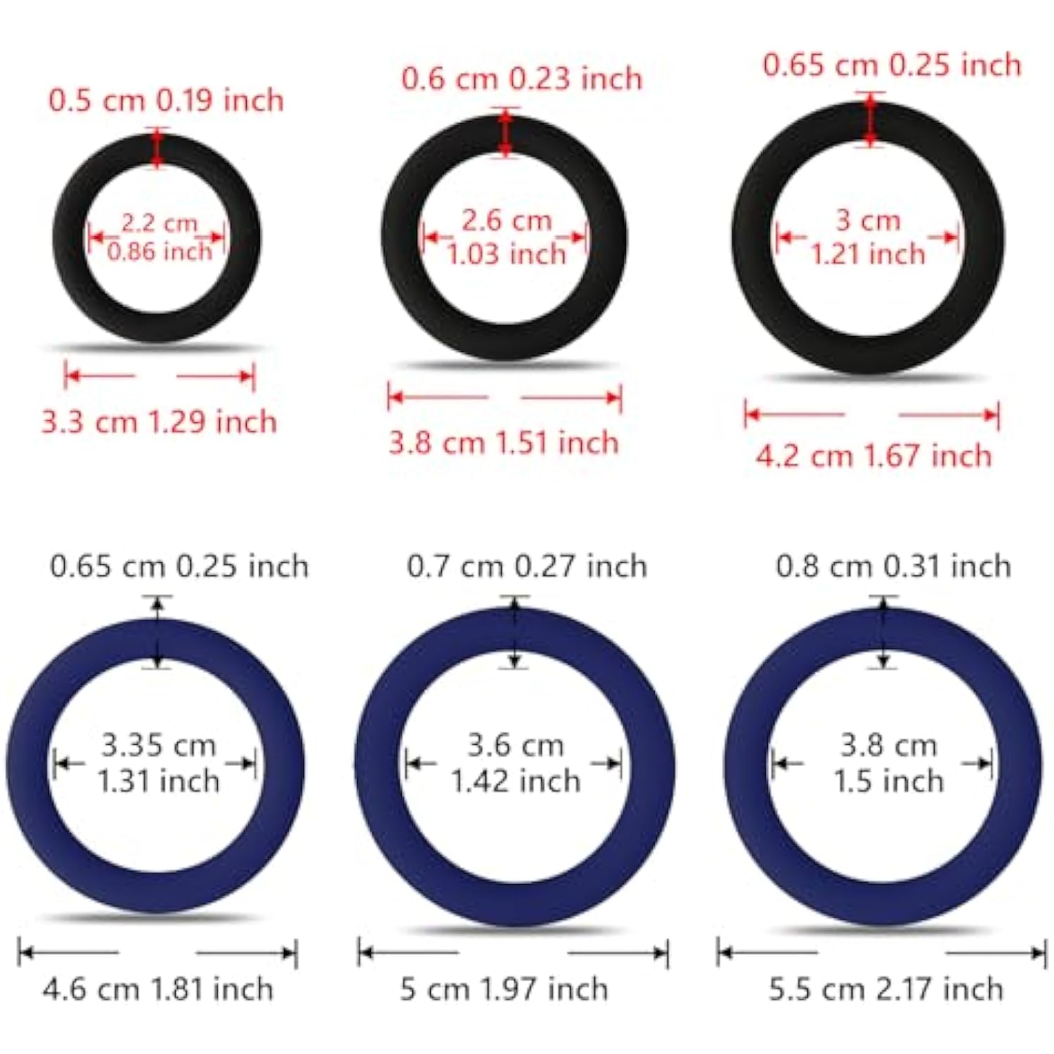 Adult Sex Toys Male Silicone Cock Glans Penis Rings Men Delay Ejaculation, Set Of 6 Multi Sizes (Black Blue)
