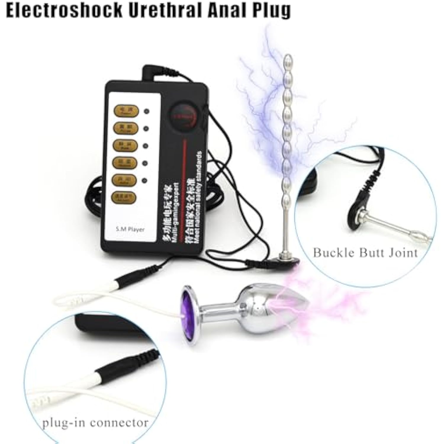Adult Sex Toys Urethral Sound Electric Shock Stimulation Anal Plug Chastity Devices Metal Dilator Penis Set With Host Bdsm Fetish Bondage Prostate Massager (S)
