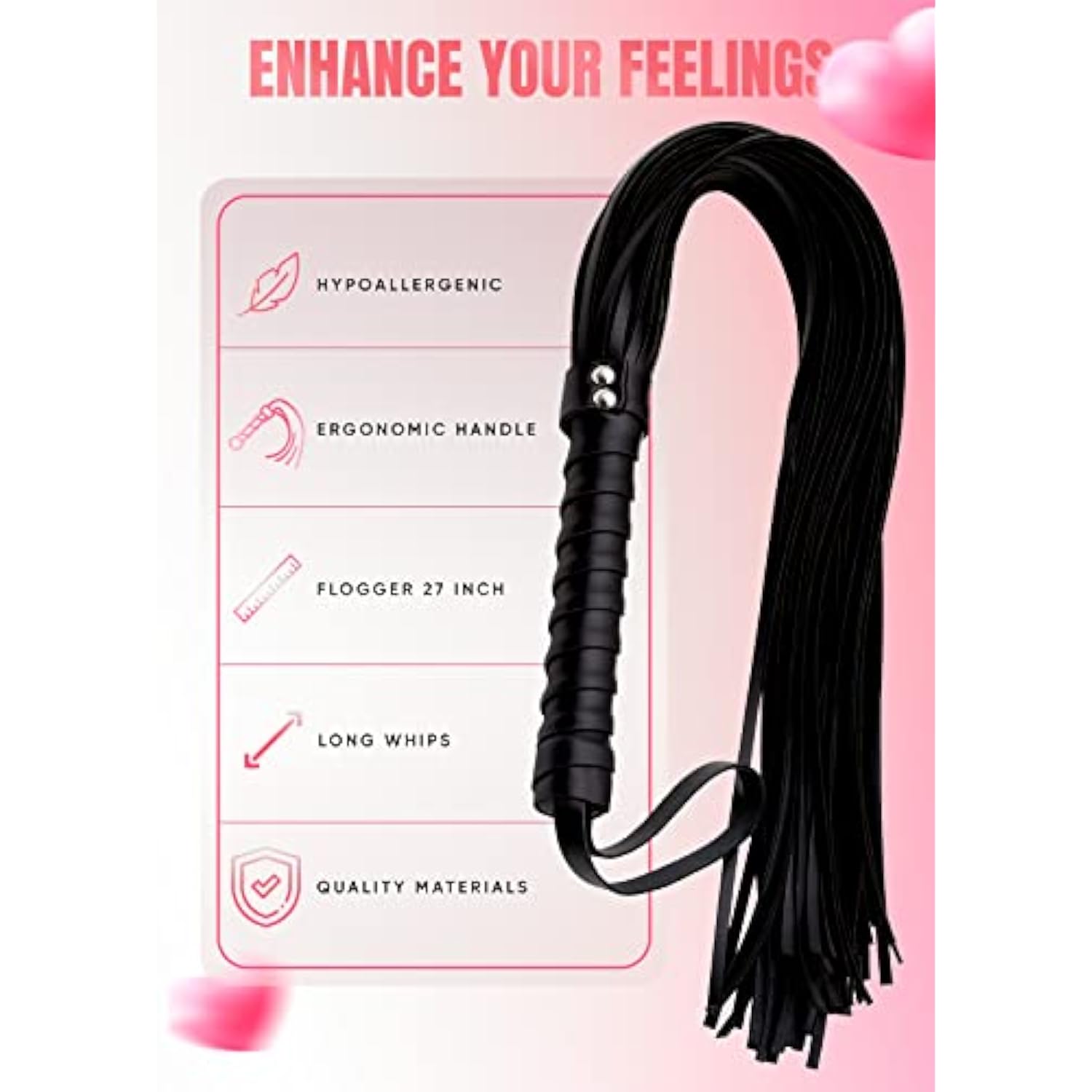 | Bdsm Whip Crafted With Multiple Faux Leather Tails Delivers Both Light Teasing And Sharp Sensations, Perfect For Seductive Foreplay And Immersive Bedroom Roleplay. | | This Adult Flogger Features A Textured, Easy-Grip Handle With Metal Studs For Confident Control, Adding Style And Power To Your Intimate Scenes. | | 27-Inch Overall Length Allows Varied Impact Intensity, From Playful Strokes To Deeper Stimulation—Ideal For Exploring Shared Boundaries In Couple'S Intimacy. | | Flexible Faux Leather Strands Produce A Satisfying Sound And Feel, Enhancing Sensory Play And Connection Between Partners During Erotic Sessions. | | Durable Wrist Loop Ensures Secure Handling During Passionate Movement, Giving You Full Command Of Rhythm, Pressure, And Positioning With Every Swing. | |