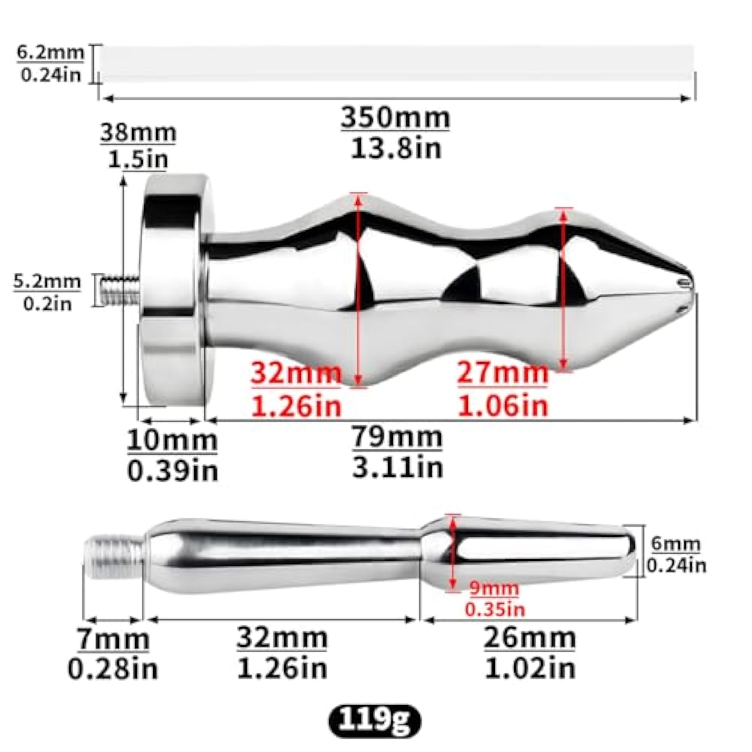 | High-Quality Material: This Urethral Dilator With Anal Plug Is Made Of High-Quality Aluminum Alloy, With A Smooth Surface And No Extra Burrs, And Can Be Used Safely. | | Unique Design: This Urethral Sound Has A Unique Design. The Penis Plug With A Catheter Is Connected To The Anal Plug. The Anal Plug Has Holes To Facilitate The Flow Of Liquid Into The Body. | | Multiple Ways Of Use: Hollow Anal Plugs, Urethral And Urethral Dilator Can Be Used At The Same Time, Enjoy Stimulation In Multiple Positions, And Add More Fun To Your Sex Life. | | Easy To Clean: This Penis Plug With Anal Plug Is Waterproof And Easy To Clean. It Can Be Cleaned With Water, Shower Gel Or Disinfectant, Which Is Simple And Convenient; It Can Be Used In The Bathroom. | | Neutral Box: All Products In Our Store Use Neutral Boxes And Bags, Which Will Not Disclose Your Information. We Pay Great Attention To