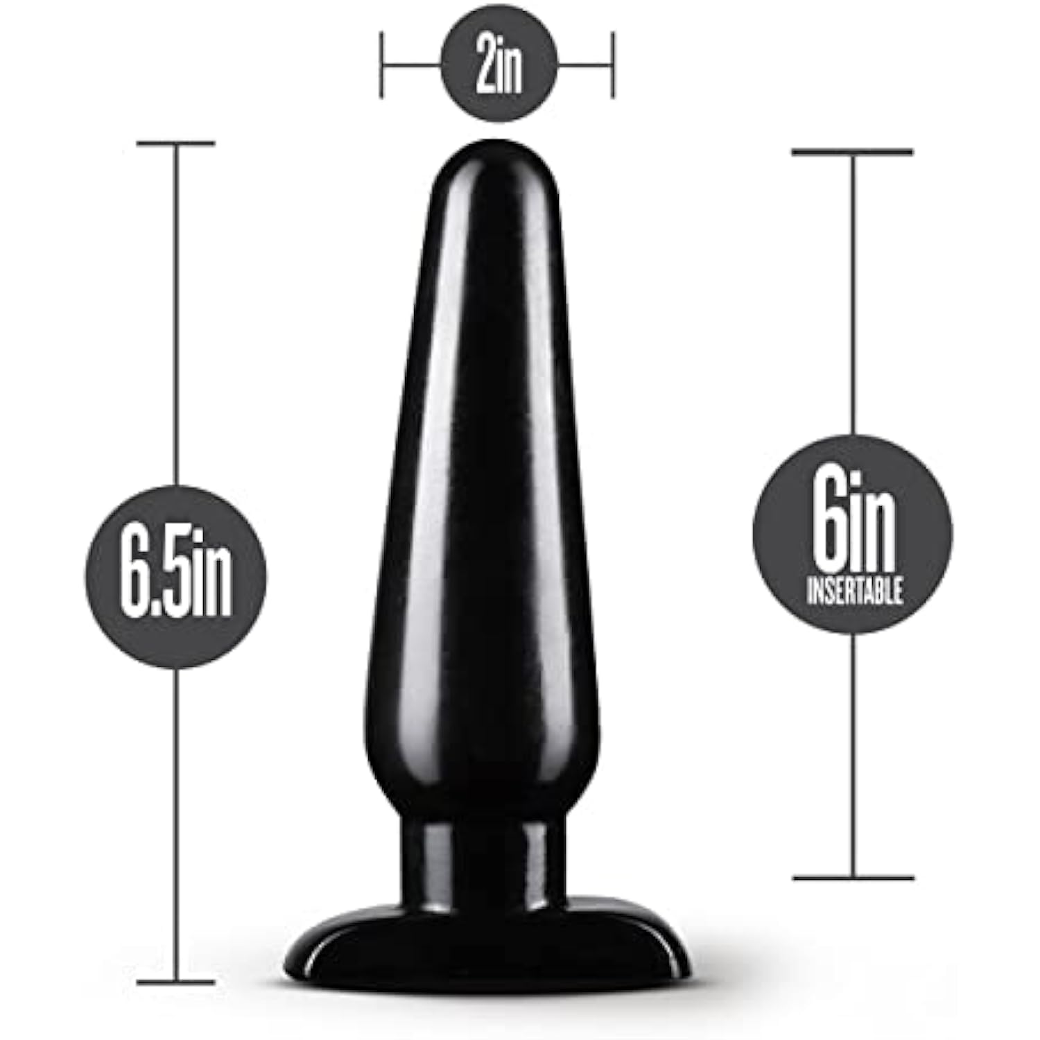 Anal Adventures Basic Butt Plug - 6 1/2 Inch Large Easy To Insert Smooth Latex Free Pleasure Advanced Adult Toy - Comfortable Anchor Base - Sex Toys For Women Men Couples - Black