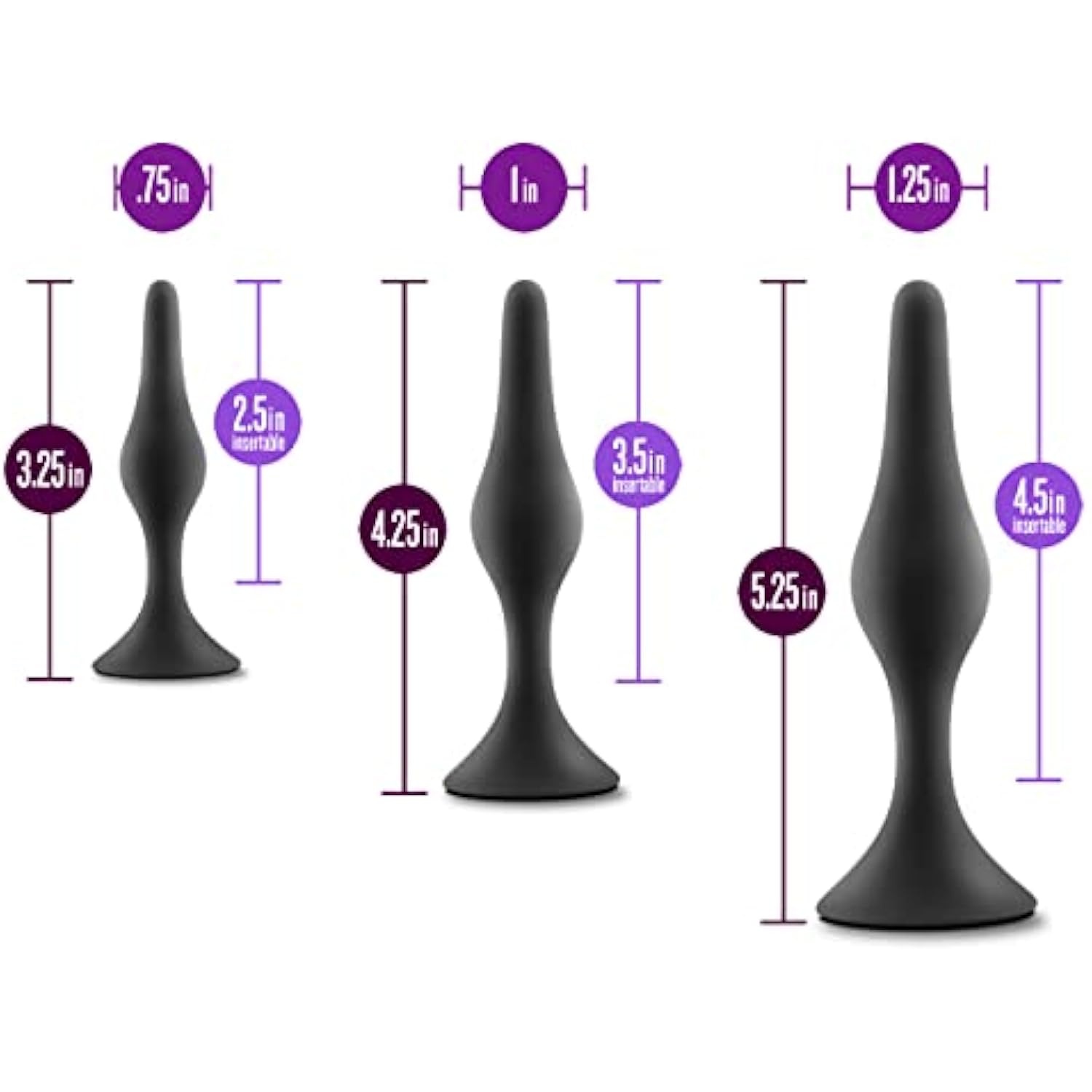 Anal Adventures Platinum Silicone Beginner Plug Kit - Three Different Sized Tapered Plugs For Anal Training - Comfortable Base For Safety And Long Term Wear - Sex Toys