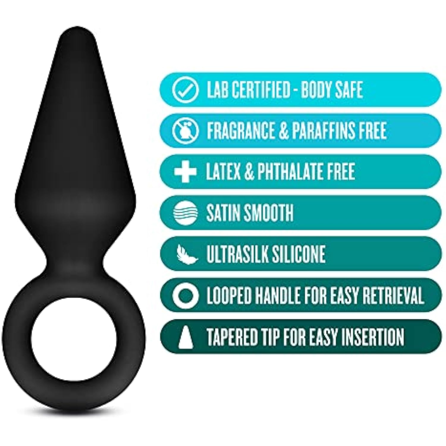 Anal Adventures Platinum Ultrasilk Silicone Retrieval Ring - Small Beginners Training 3 Inch Butt Plug Adult Toy - Latex And Phthalate Free - Sex Toys For Women Men Couples - Black