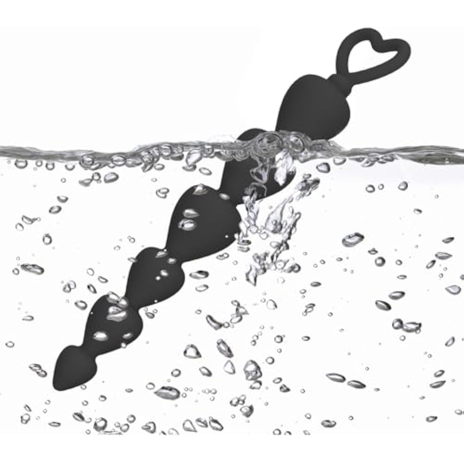 Anal Bead 5.6 Inch Gradual Sizing Beaded Colorful Butt Plug With Pull Ring, Small 6 Beads Unisex Anus Sex Toys For Starters (Black)