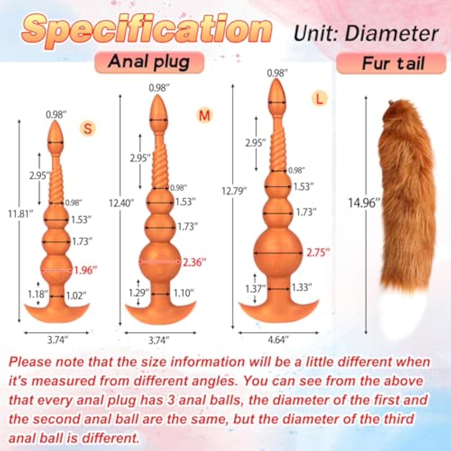 Anal Beads Anal Butt Plug With Removable Artificial Fur Fox Tail Silicone Adult Sex Toy For Prostate G-Spot Stimulation Anus Training Role Play Erotic Sex Game For Men Women Couple Black L