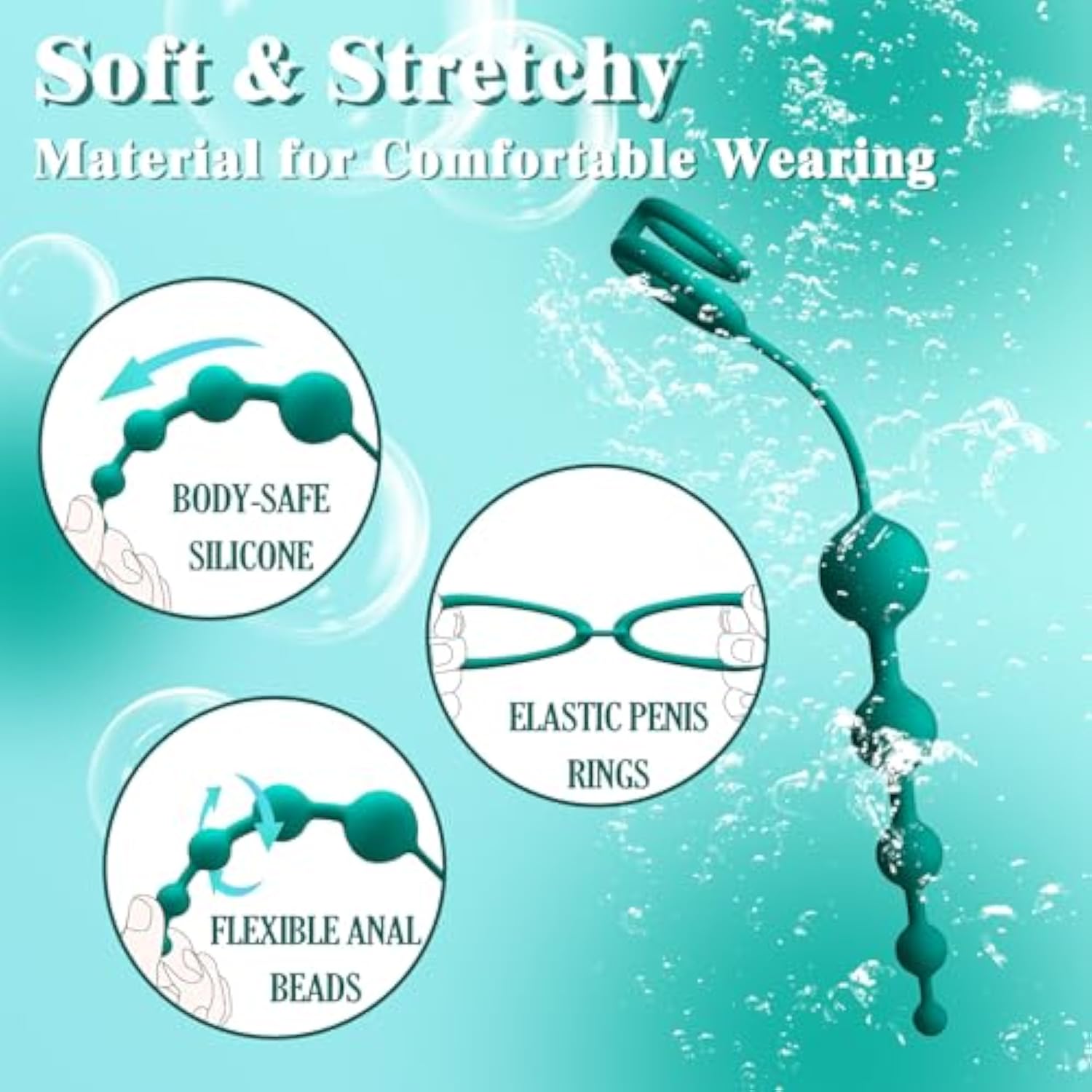 Anal Beads Butt Plug With Penis Cock Rings Adult Anal Sex Toys For Women Men, Flexible Silicone Anal Plug Prostate Massager Graduated Design Bullet G Spot Stimulor For Couples Play-Green