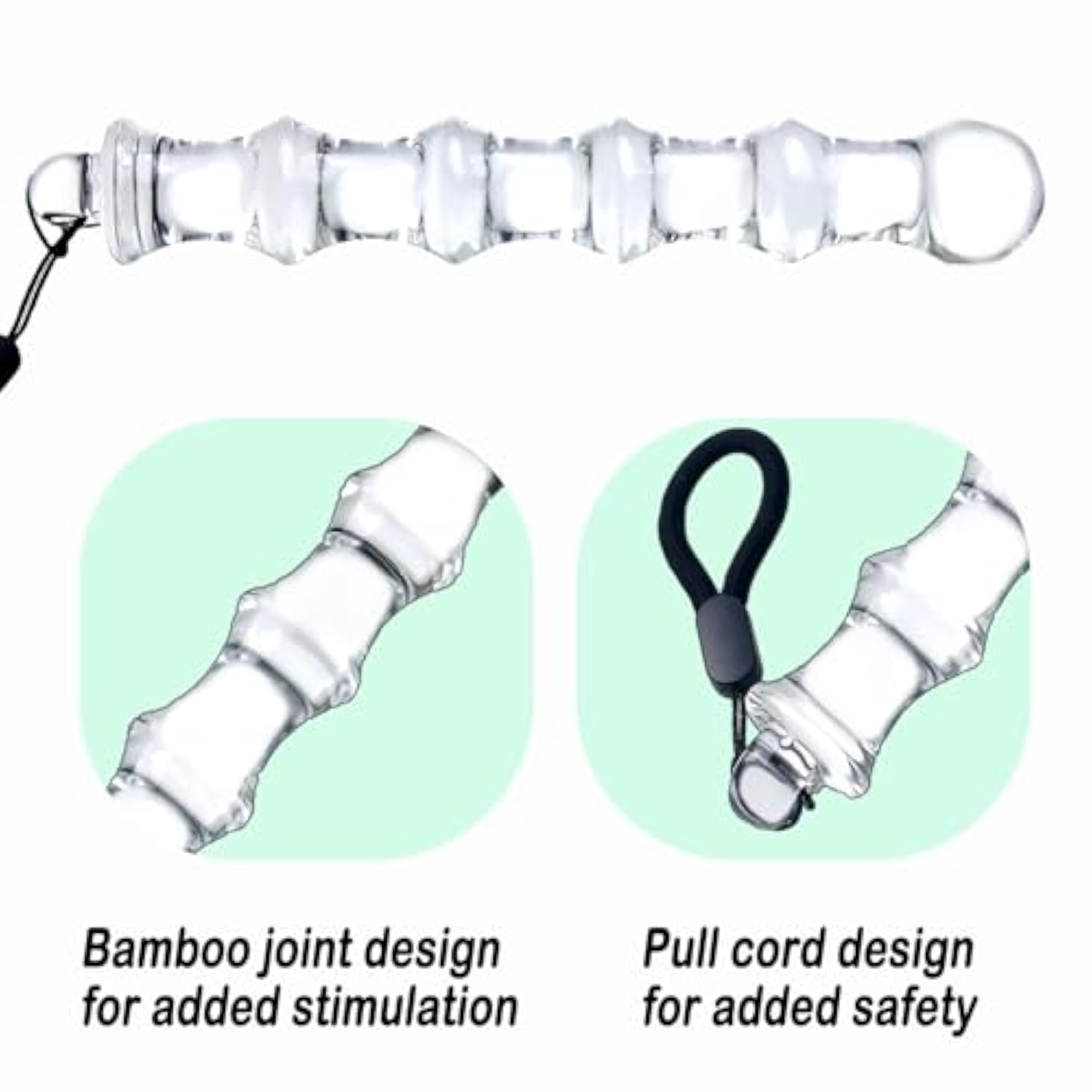 | 6 Beads: The Design Of This Anal Plug Is Inspired By Bamboo, Which Is Very Interesting. It Has 6 Evenly Spaced Bamboo Joints From Top To Bottom, When Used, The Protrusions Between The Bamboo Joints Effectively Stimulate The G-Spot On The Inner Wall Of The Anus, Providing More Sexual Pleasure | | Safe Rope: The Bottom Of The Anal Beads Has A Hole And Is Equipped With A Black Pull Cord. The Butt Plug Is Approximately 7.67 Inches Long And Can Be Fully Inserted To Explore Deeper Areas. Please Note That The Rope Should Remain Outside The Body | | Glass Materials: Anal Sex Toy Is Made Of Premium Glass, With A Smooth Surface And Comfortable To The Touch. Glass Is A Temperature-Sensitive Material That Can Be Heated Or Cooled With Water For Stimulating Temperature Play | | Bamboo Design: Transparent Glass, Bamboo Shape, Looks Like A Beautiful Craftwork When Illuminated. Beautiful Sex Toys Can Stimulate Sexual Desire Even More | | Discreet Package: Adult Sex Toy Is Packaged In An Opaque Box With No Information About Adult Sex Toys On The Box. There Is A Storage Pouch Inside The Box For Easy Storage | |