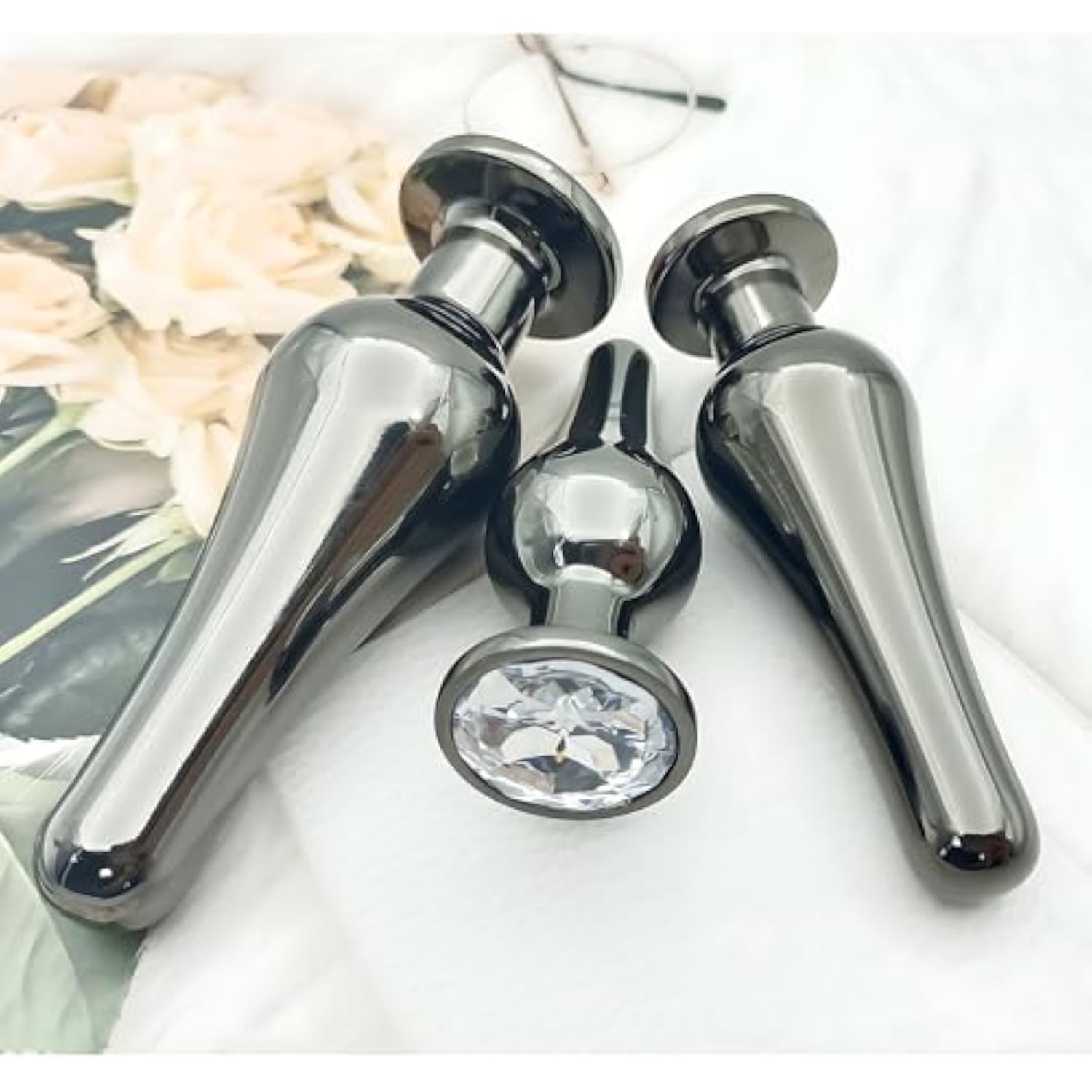 Anal Butt Plug 3-Piece Set - Expanding Metal Trainer Kit With Ergonomic Design Adult Sex Toys For Couples And Solo Use