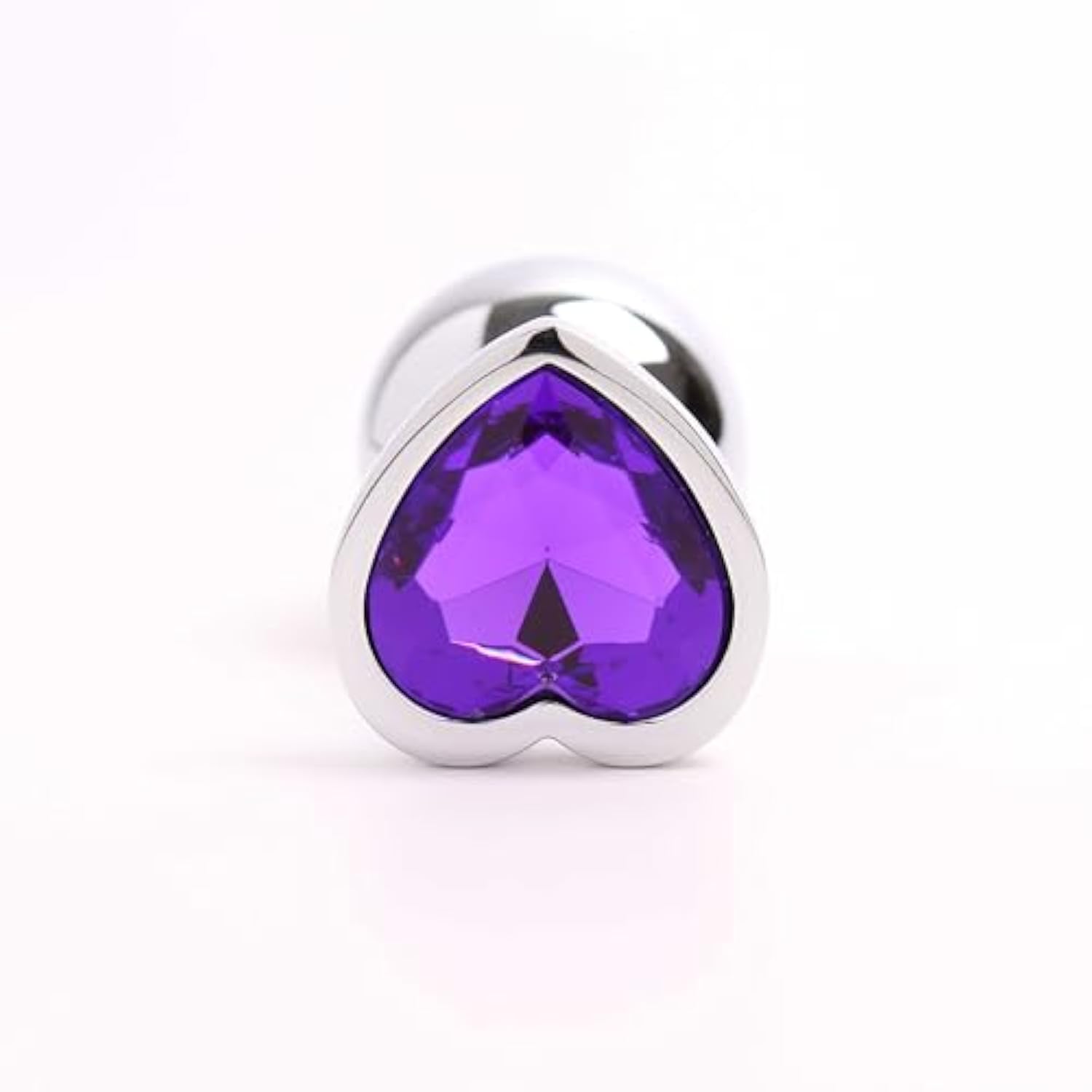 Anal Butt Plug, Heart Shaped Anal Trainer Jewel Butt Plug, G Spot Stainless Steel Personal Massager Butt Plug For Women Men And Couples(Purple, L)