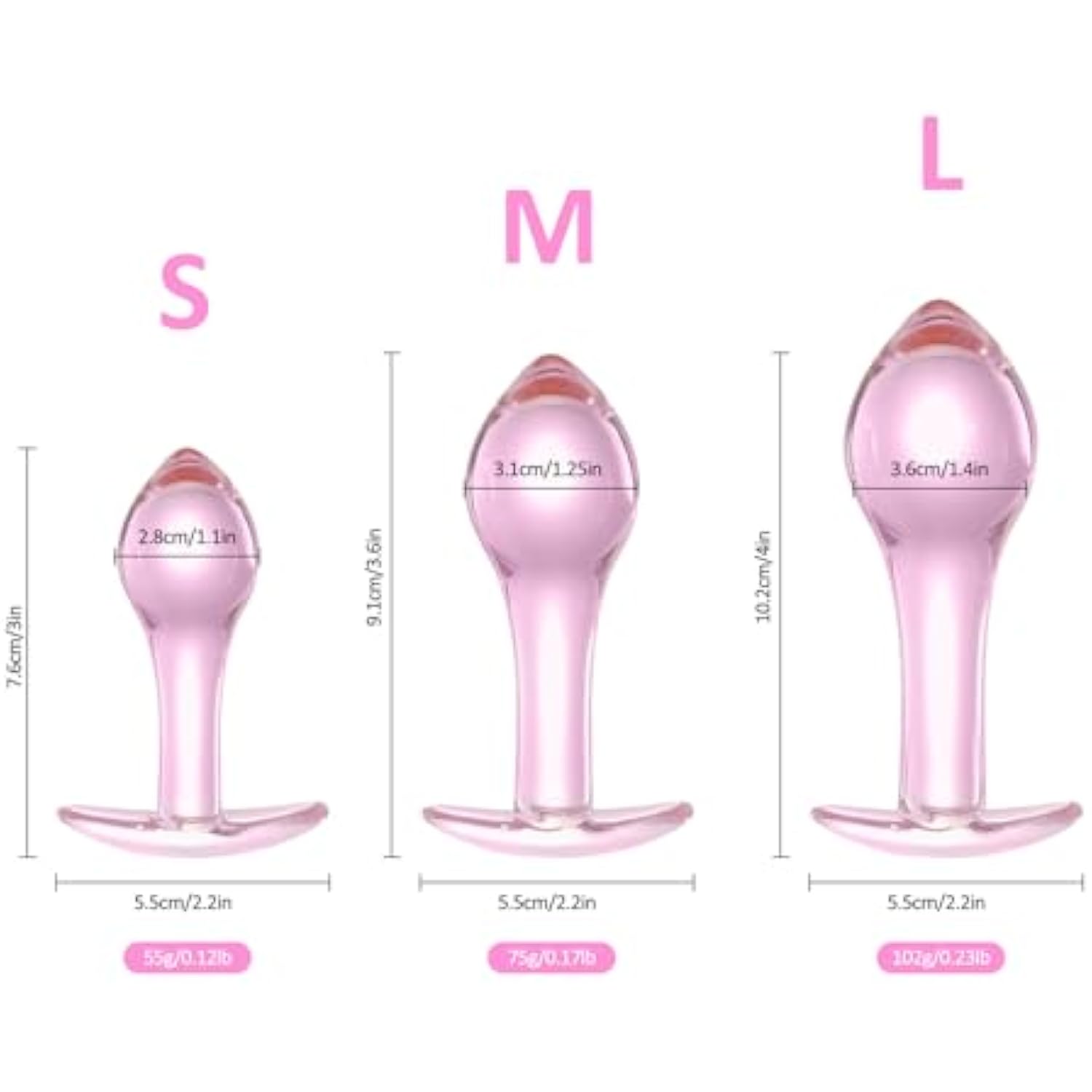 - ?3 Pcs Butt Plug Training Kit?Each Kit Comes With 3 Sizes Of Glass Anal Plugs In 3”, 3.6”, And 4". Our Anal Dilator Helps Relax The Muscles And Skin Around The Rectum, Making It More Elastic And Able To Comfortably Accommo More Fullness. Train Gradually