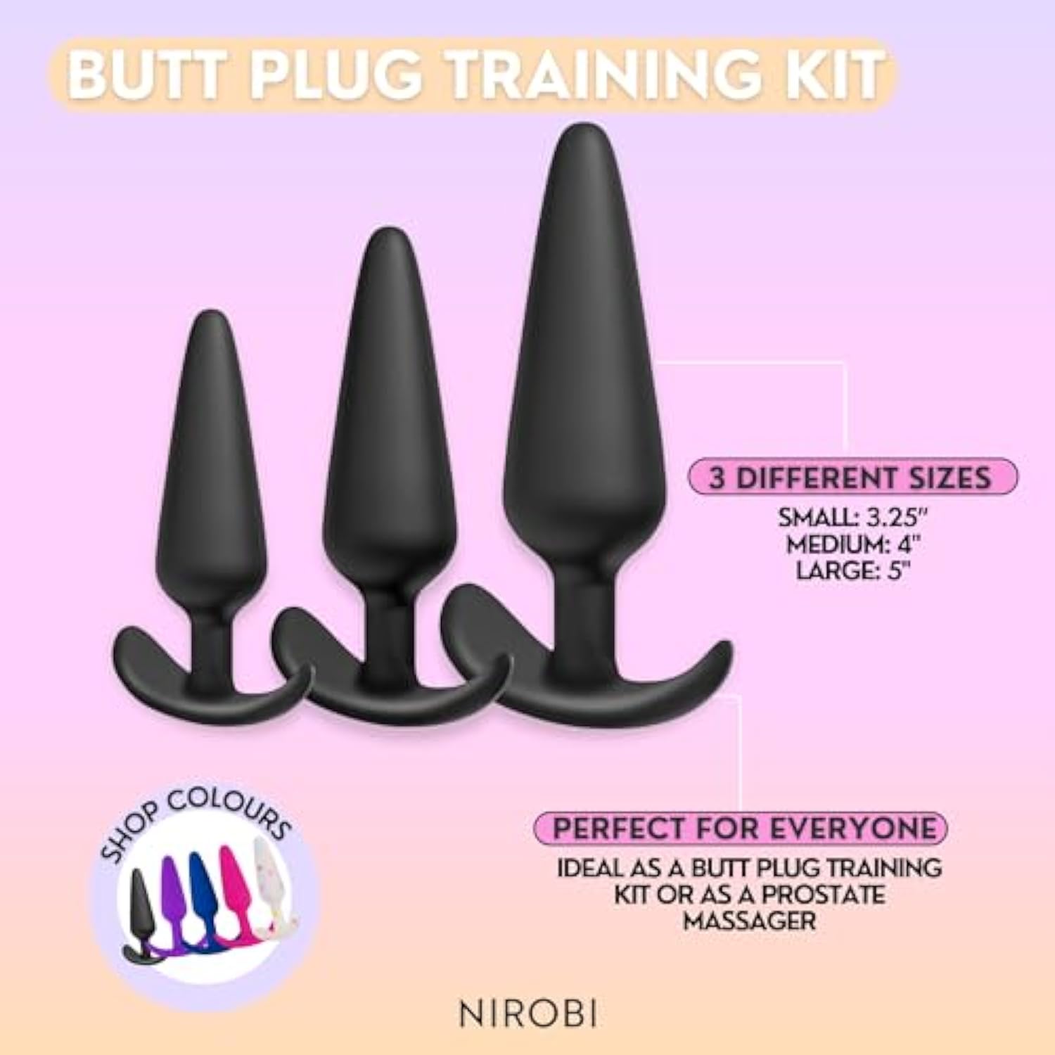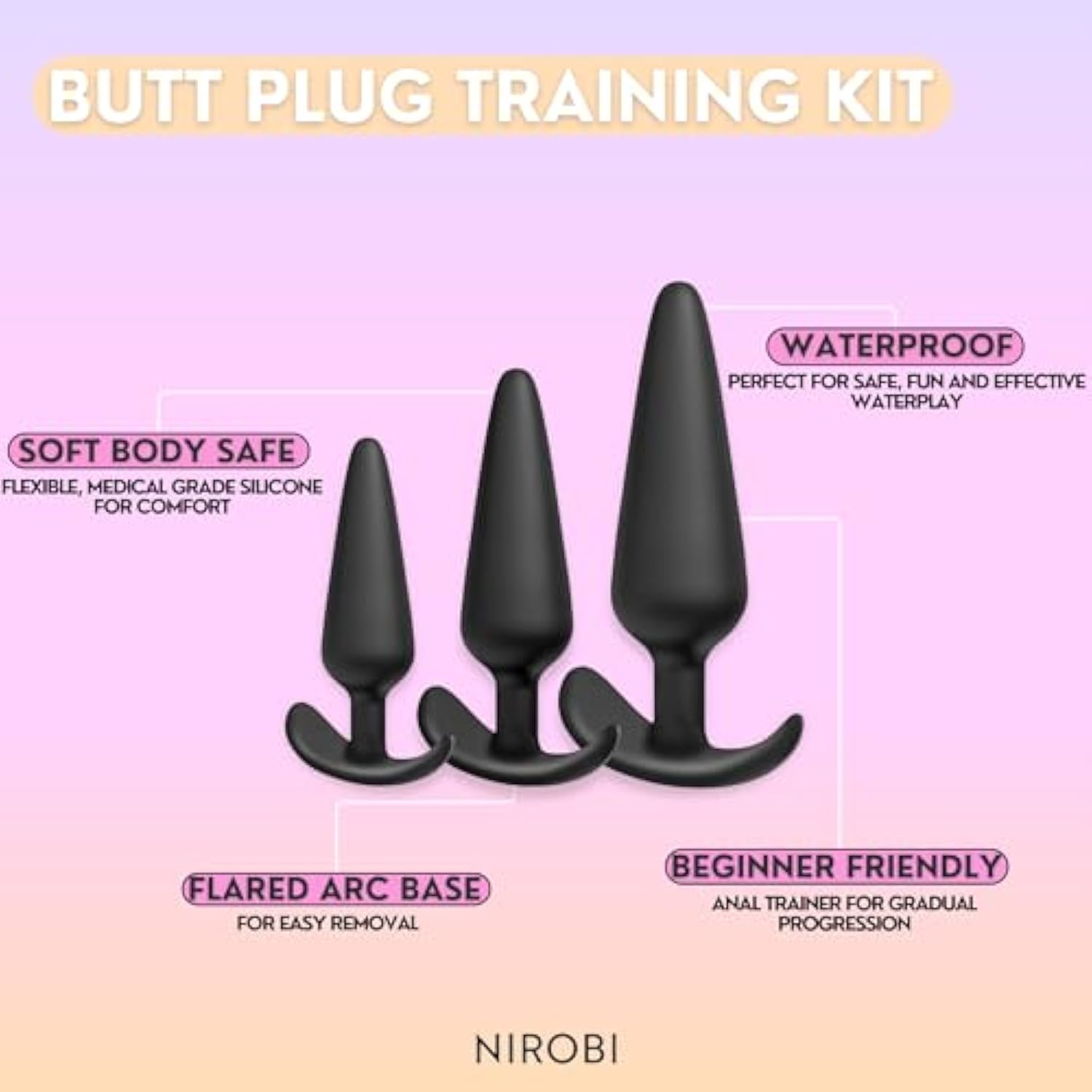 Anal Butt Plug Training Kit – 3 Sizes (Small, Medium, Large), Silicone, Waterproof, Flexible & Body-Safe, Beginner To Advanced Butt Plug Trainer Set (Black)