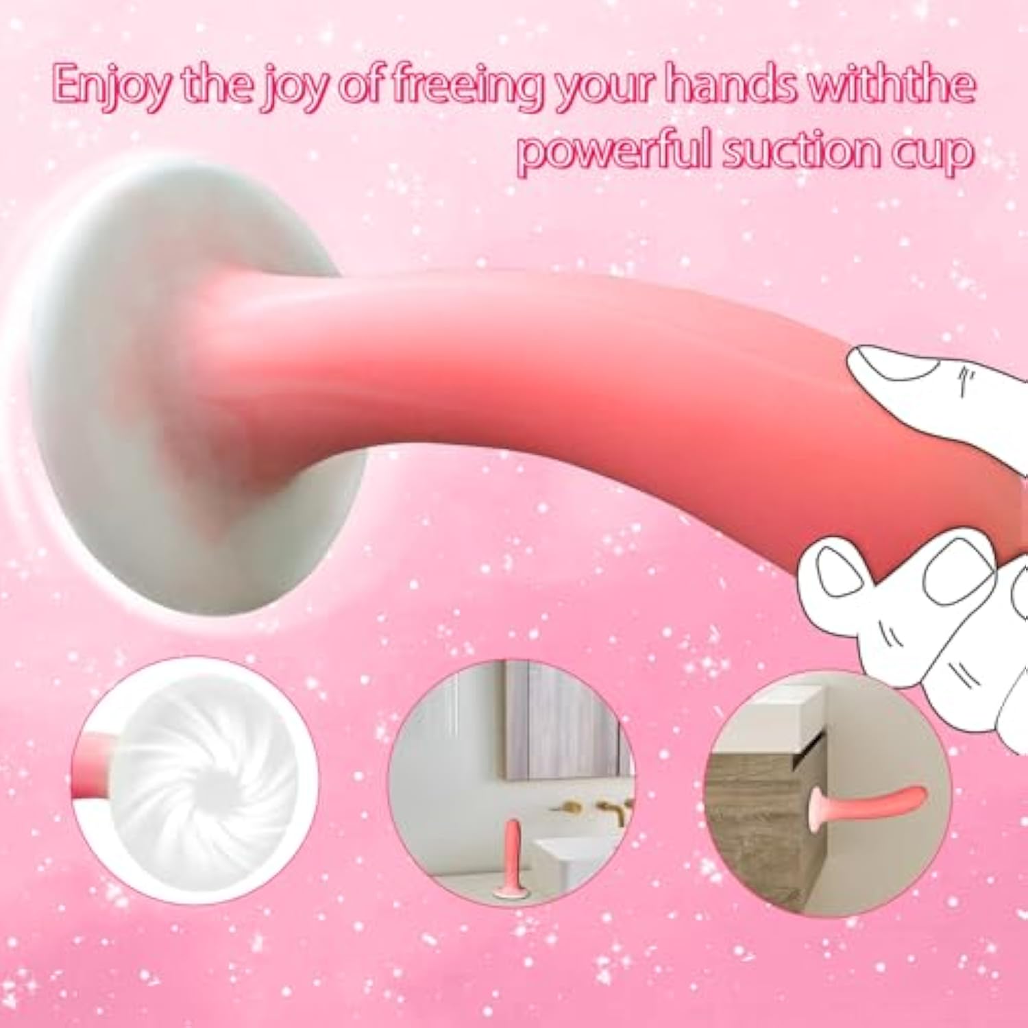 Anal Dildo Anal Sex Toy,Skin-Like Liquid Silicone Anal Plug Trainer For Comfortable Long-Term Wear,Comfortable Curved Ergonomics With Flared Suction Cup Base,Women Men Adult Toys (Pink)