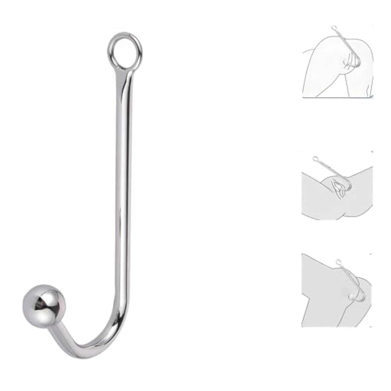| Material: Premium-Grade Stainless Steel Construction Ensures Durability And Smooth Surface Finish | | Design: J-Shaped Curved Shaft With Spherical End And Ring Loop For Secure Handling | | Dimensions: 6-Inch Total Length With 1-Inch Diameter Polished Ball End For Comfort | | Features: Sturdy Ring Attachment Point Allows For Versatile Use And Enhanced Control | | Maintenance: Easy To Clean And Maintain With Smooth, Seamless Construction | |