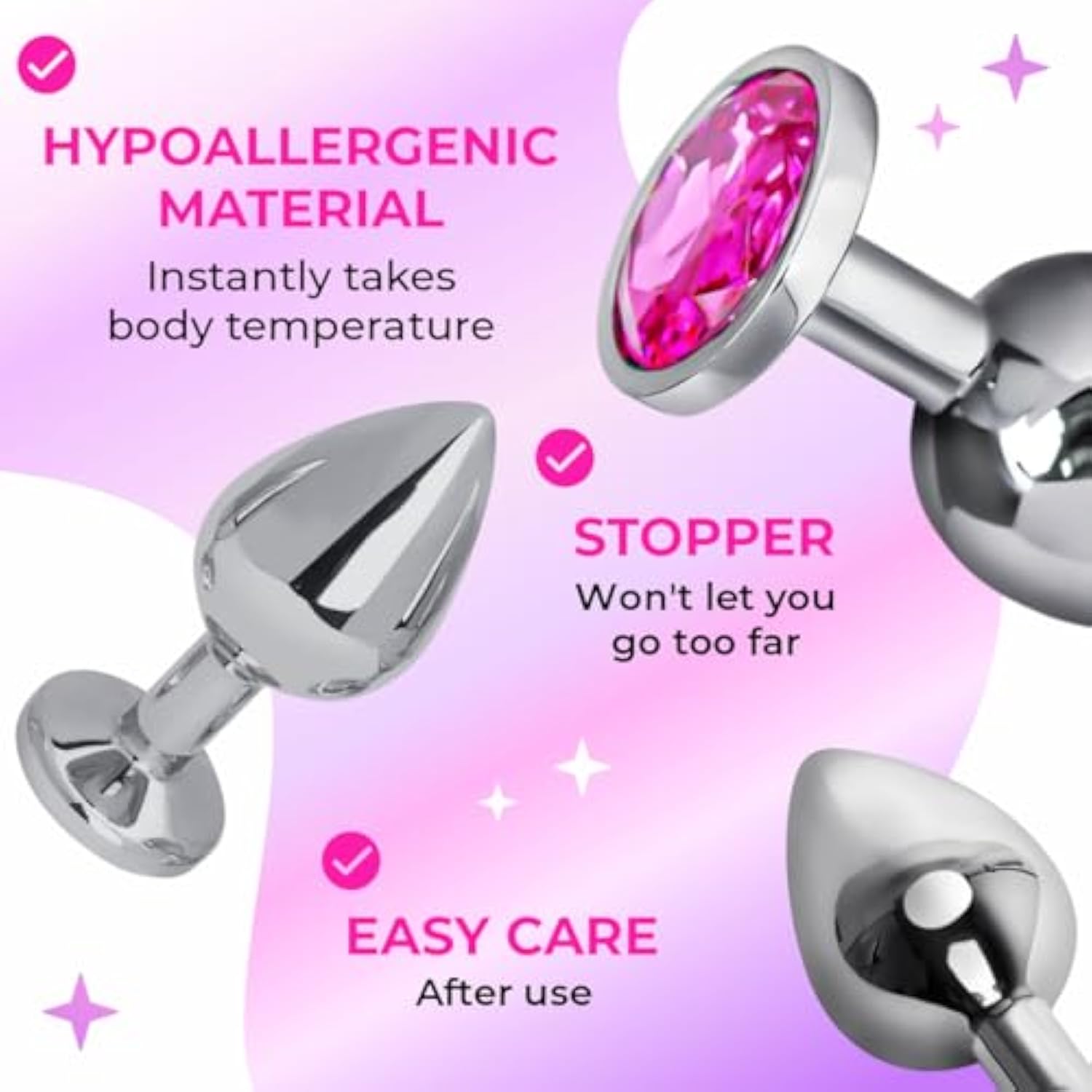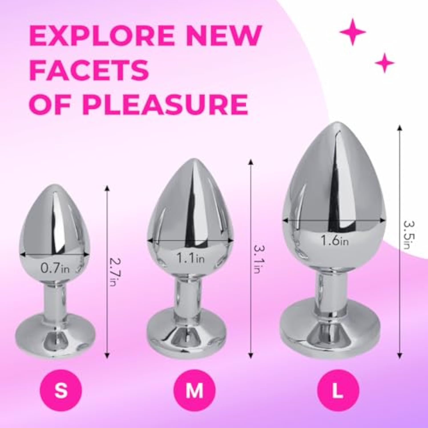 Anal Plug 3Pcs – Jeweled Butt Plugs – Luxury Anal Sex Toys – Steel Butt Plug For Men & Women – Sex Massage