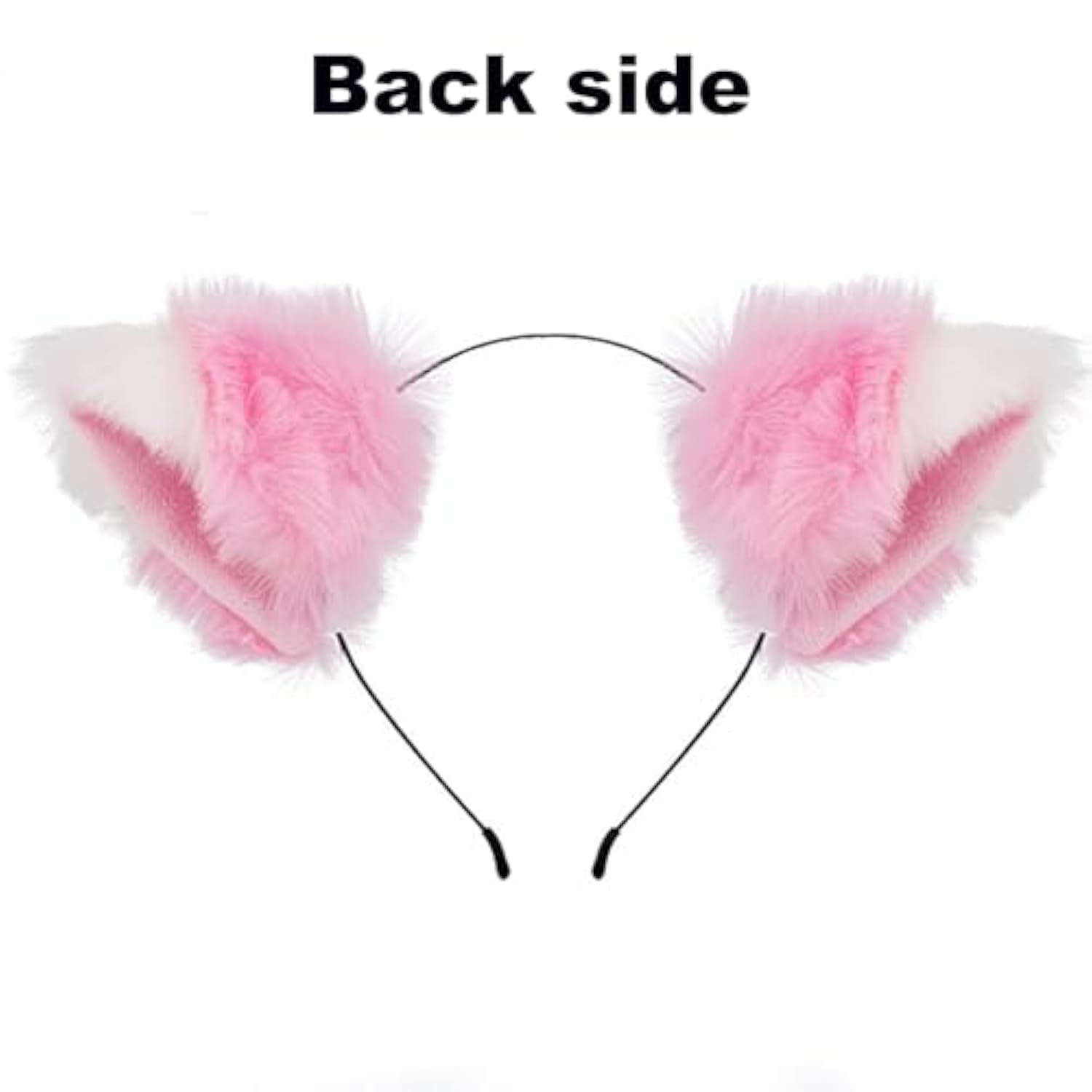 Anal Plug Fox Tail With Ear 15.75-Inch-Long Sexual Anus Tail Butt Plug Cosplay Game Pink & White Sex Toy For Women Men