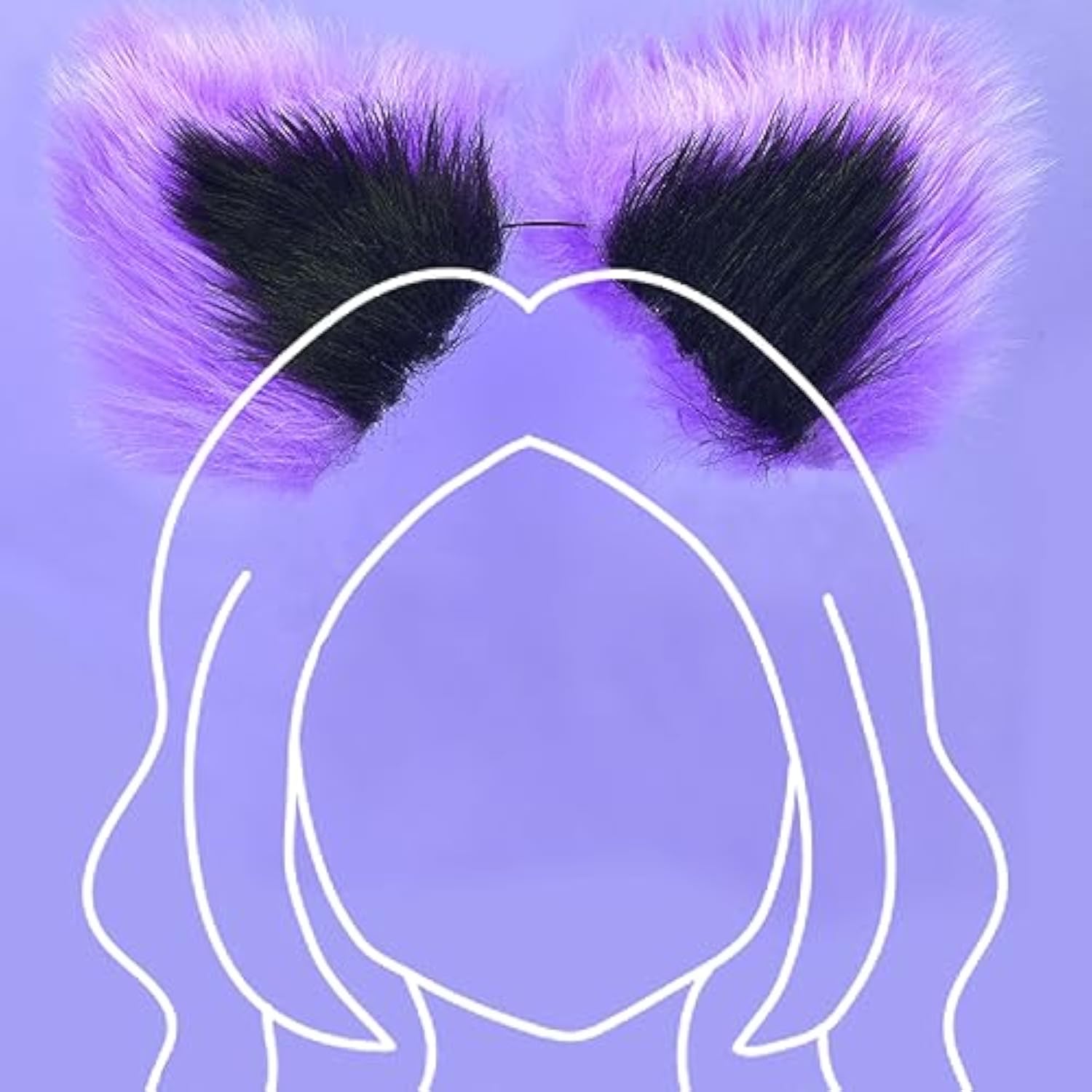 Anal Plug Fox Tail With Ear For Cosplay Game Black & Purple 15.74-Inch-Long Sexual Anus Tail Butt Plug Sex Toy For Women Men