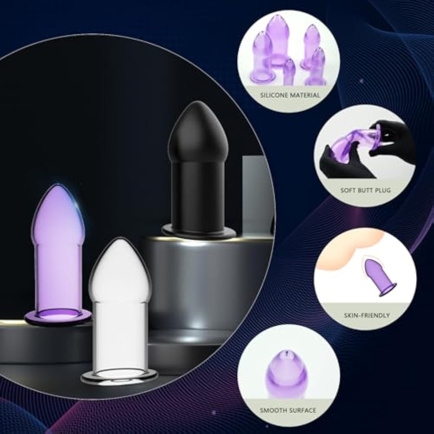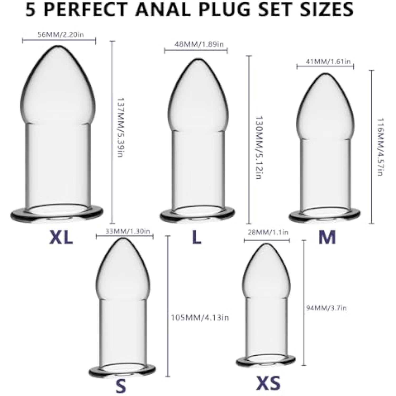 Anal Plug Set 5 Pcs Soft Silicone Butt Plugs Hollow Anal Dilator Adult Anal Trainer Anales Sex Toys Bondage Kit For Men Women Couples (White)