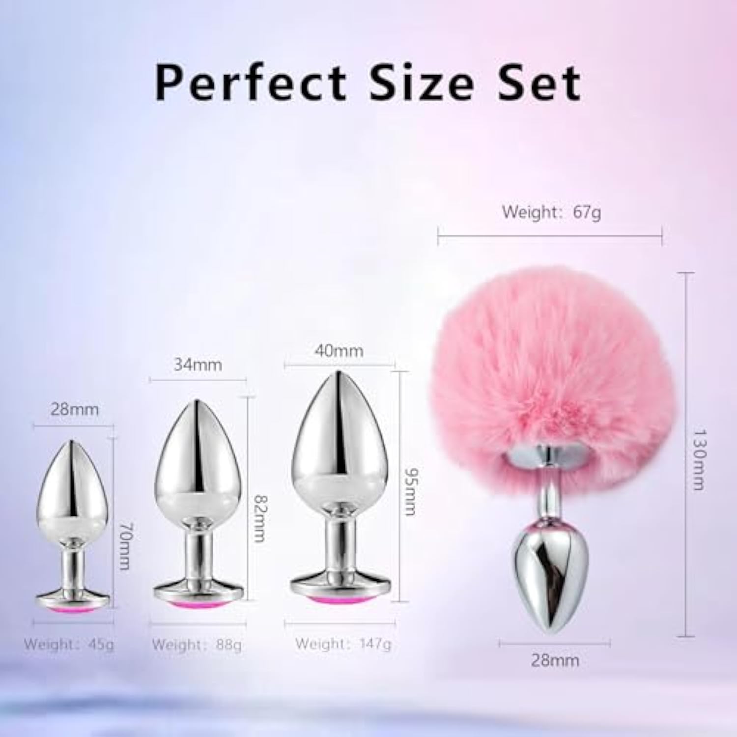 - 4Pcs Butt Plug Set Anal Plug Training Kit: 3Pcs Smooth Metal Butt Plug, 1Pcs Fluffy Fox Tail Butt Plugs,This Anal Toys Butt Plug Is Made Of A Smooth, Sturdy Metal Design.Our Anal Dildos Toys Butt Plug ?Are Designed With A Tapered Head, Which Is Easier T