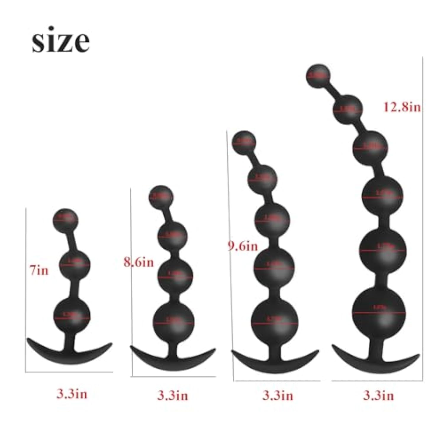 | ?High Quality Silicone Material?This Anal Plug Is Made Of High Quality Silicone Material, Which Has Good Flexibility And Elasticity, And Can Be Bent And Deformed At Will. The Texture Is Soft; The Resilience Is Strong. | | ?Beads Gradually Get Bigger?The Anal Plug Pulling Beads Have A Rounded Head For Smoother Entry. From The Top To The Tail, The Diameter Of The Beads Gradually Becomes Larger, Increasing The Friction Of The Skin And Also Promoting Blood Circulation. | | ?Anchor Shape Tail?The Silicone Anal Plug Has An Elongated Root To Provide Comfort And Prevent Dislodgement. The Shape Of The End Of The Plug Conforms To The Curve Of The Skin, Making It Easy To Use On The Go. | | ?4 Models] There Are Four Sizes Of This Anal Plug To Choose From, Each Of Which Can Bring A Different Feeling, So You Can Choose According To Your Needs. | | ?Discreet Packaging?We Value Every
