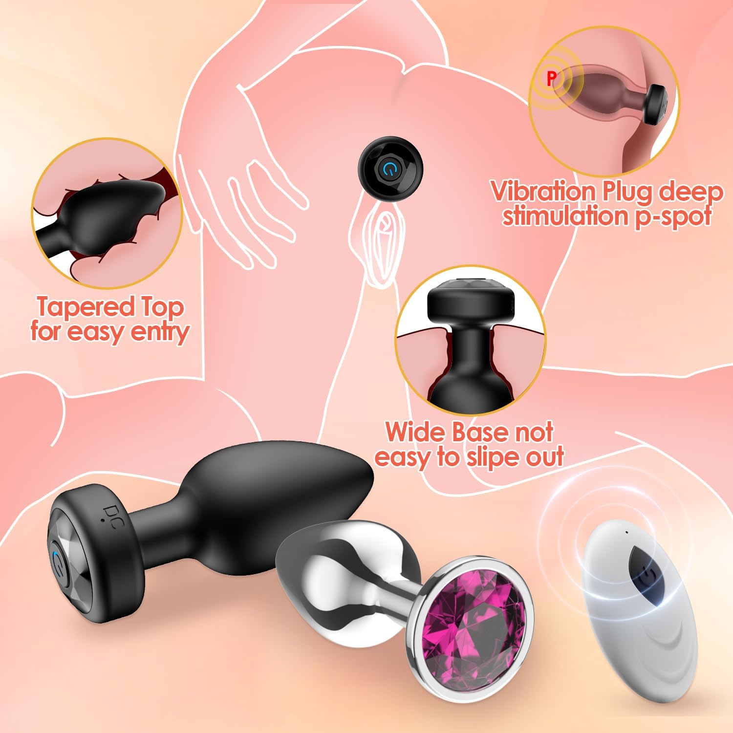 Wireless Remote Control Function – The vibrating butt plug can be controlled via its built-in button or a wireless remote, working up to 30 feet away. Enjoy hands-free stimulation or partner play with this multifunctional massager.