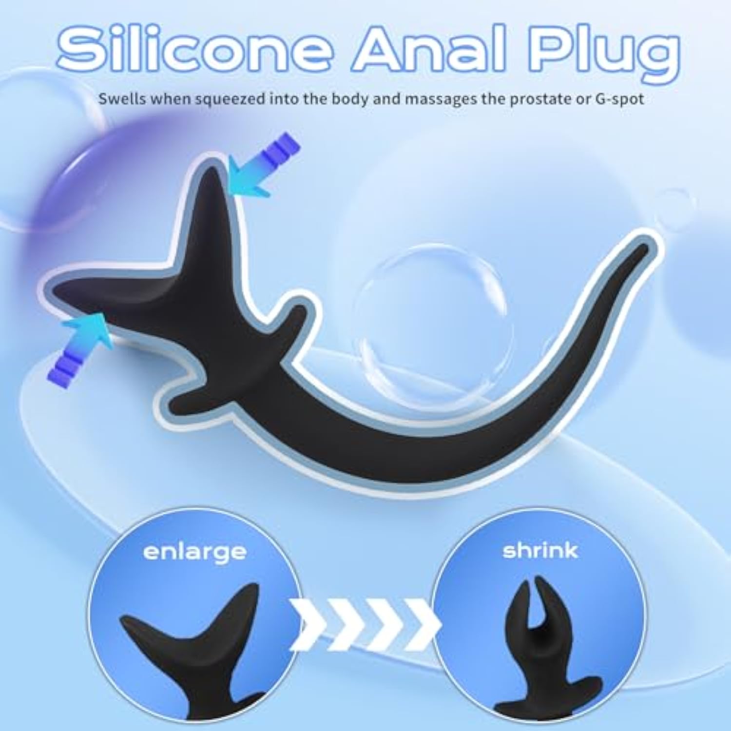 Anal Plugs Faux Puppy Tail For Couples Silicone Butt Plugs With T-Shape Base Expanding Anus Plugs For Men Adult Sex Toys For Sm & Cosplay (M)