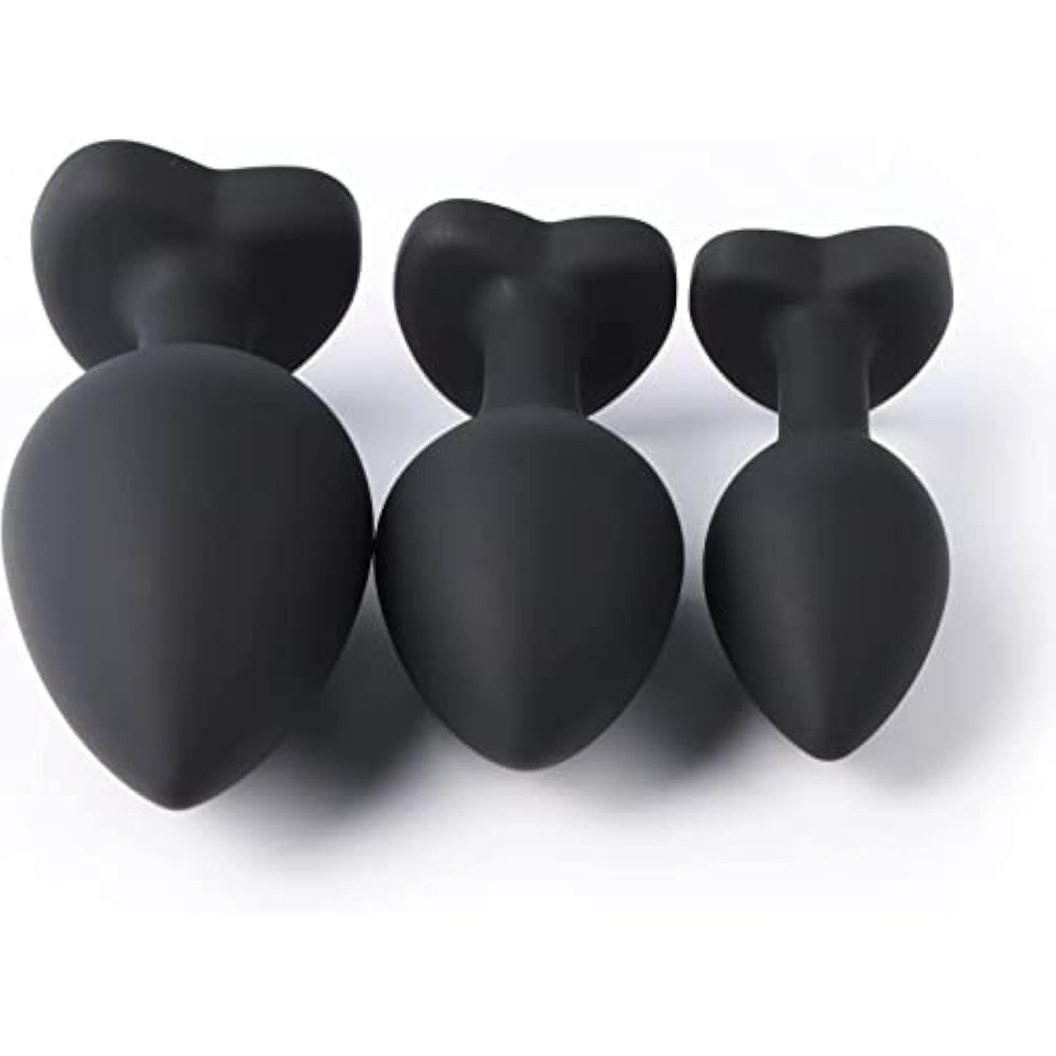 Anal Plugs Sex Toys Trainer Kit,3Pcs Silicone Jeweled Butt Plugs, Anal Butt Plug Sex Toys Kit For Starter Beginner Men Women Couples (Black)