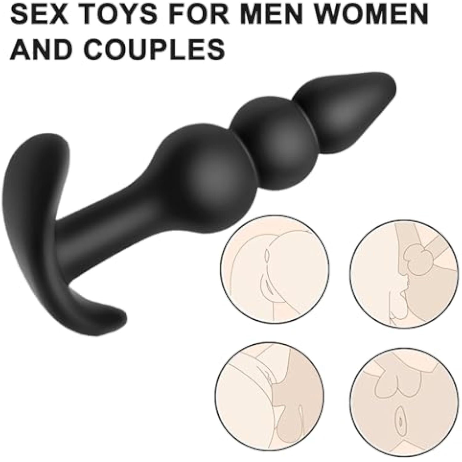Anal Plugs Silicone Butt Plugs Anal Beads Anal Adult Sex Toys & Games Anal Training Kit With Curved Base & Slender Waist G Spot Anal Prostate Stimulator For Comfortable Long-Term Wear (Black)