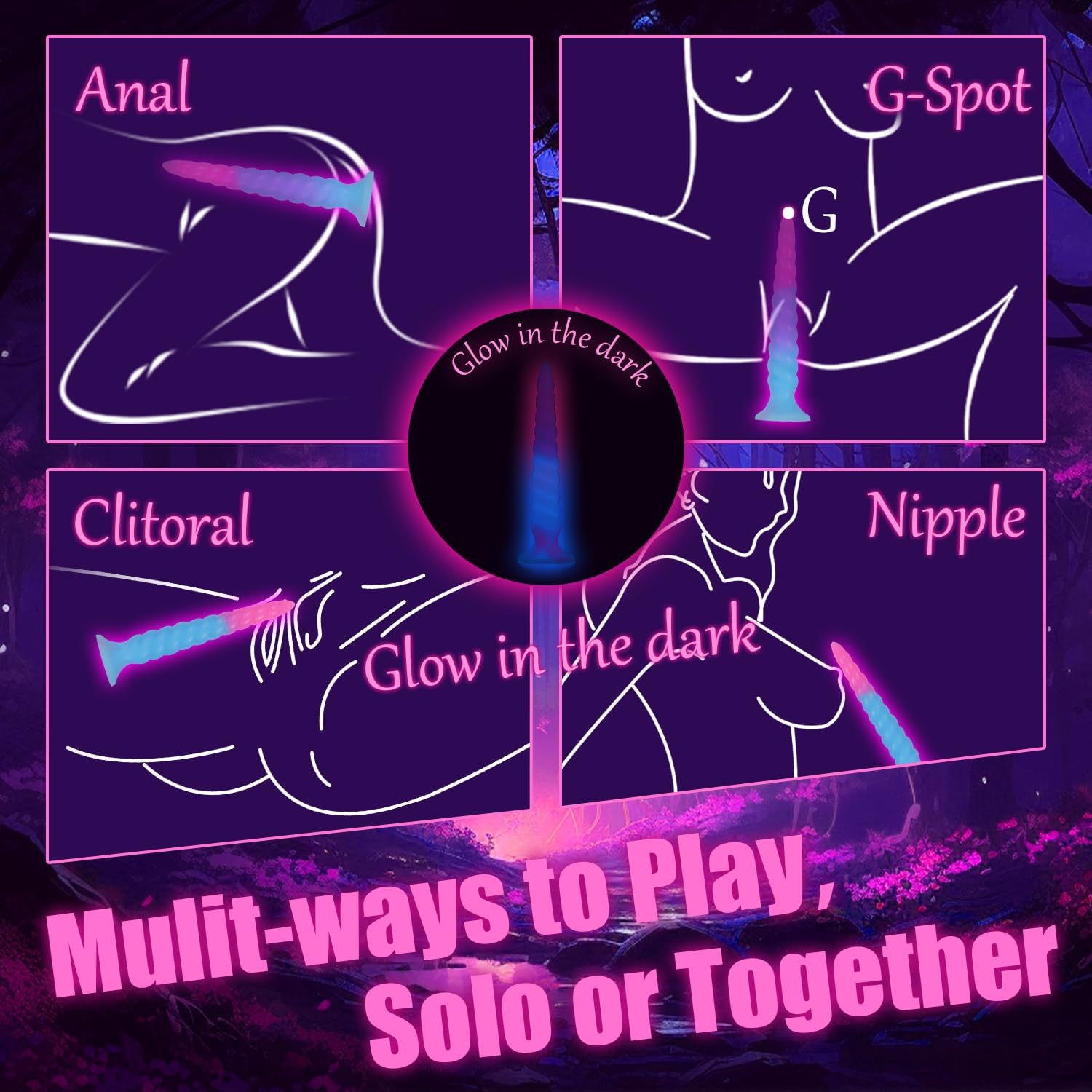Glow-in-the-Dark Fantasy Dildo – Visually Captivating Experience: This anal dildo features a glow-in-the-dark effect, charged by any light source. Its luminous glow adds a playful, captivating element to your experience, combining visual allure with intense pleasure.