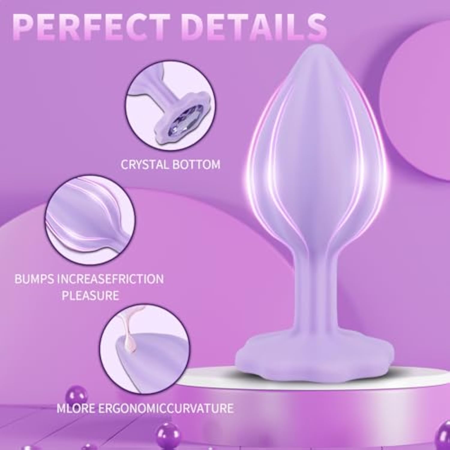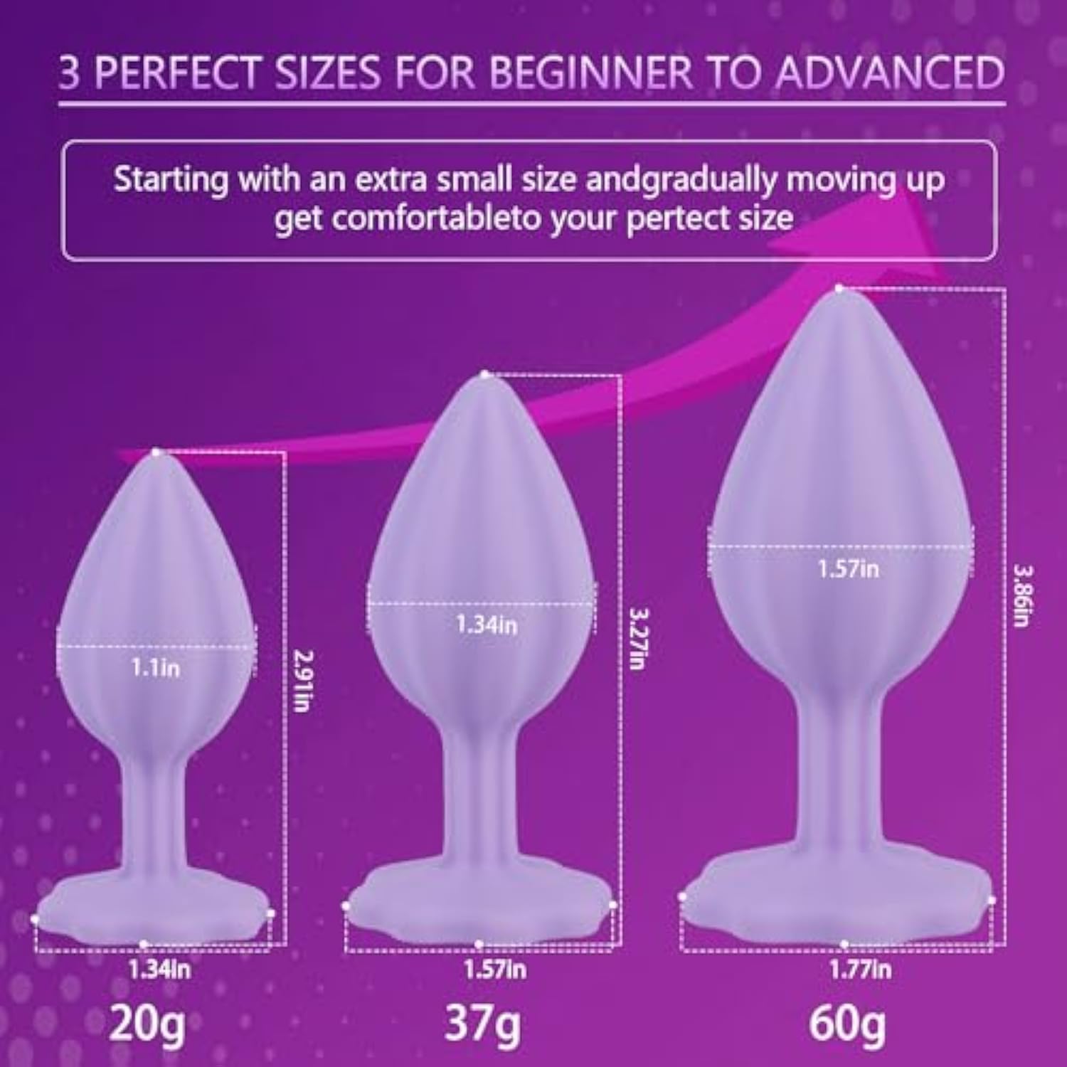 Anal Sex Trainer 3Pcs Set Silicone Butt Toys Anal Trainer Jewel Butt Plug Kit S&M Anal Sex Toys Kit For Starter Beginner Men Women Couples, Light Purple