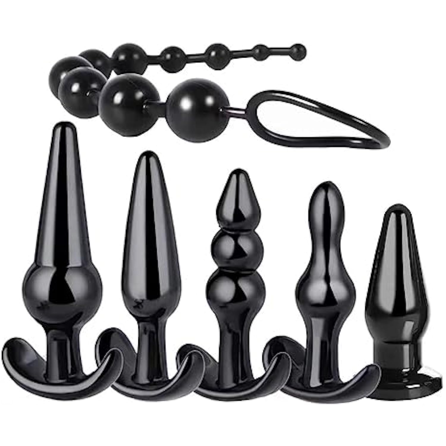Anal Toys Butplug For Training, 6 Piece Butt Plug Set, Silicone Anal Plugs With 5 Different Buttplug And 1 Anal Beads, Sm Sex Toys For Couples Flirt Play Fetish Cosplay