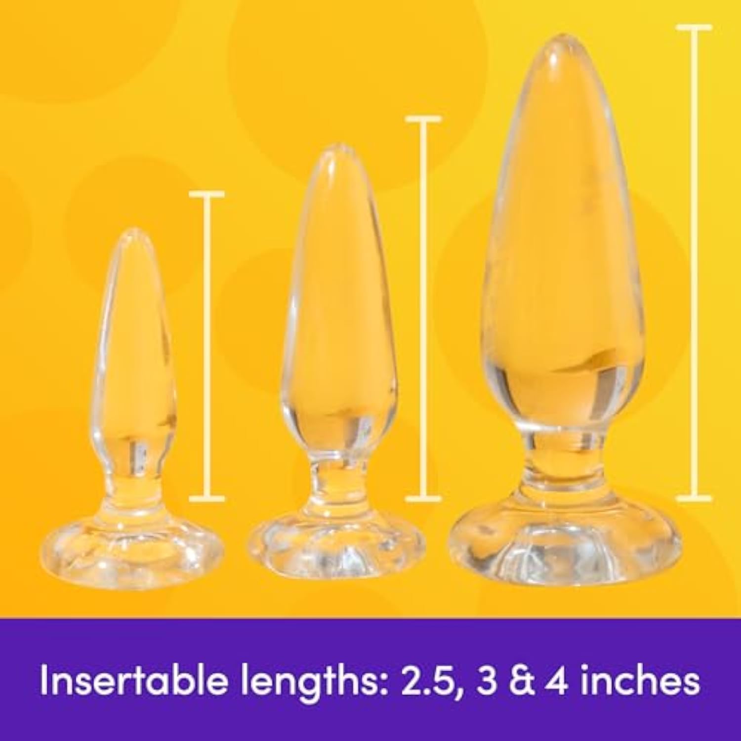 Anal Training Kit - 3 Piece Crystal Clear Butt Plug Set - Progressive Size Small To Large Suction Cup Anal Plugs - 2.5-4 Inch Adult Sex Toys For Men, Women & Couples
