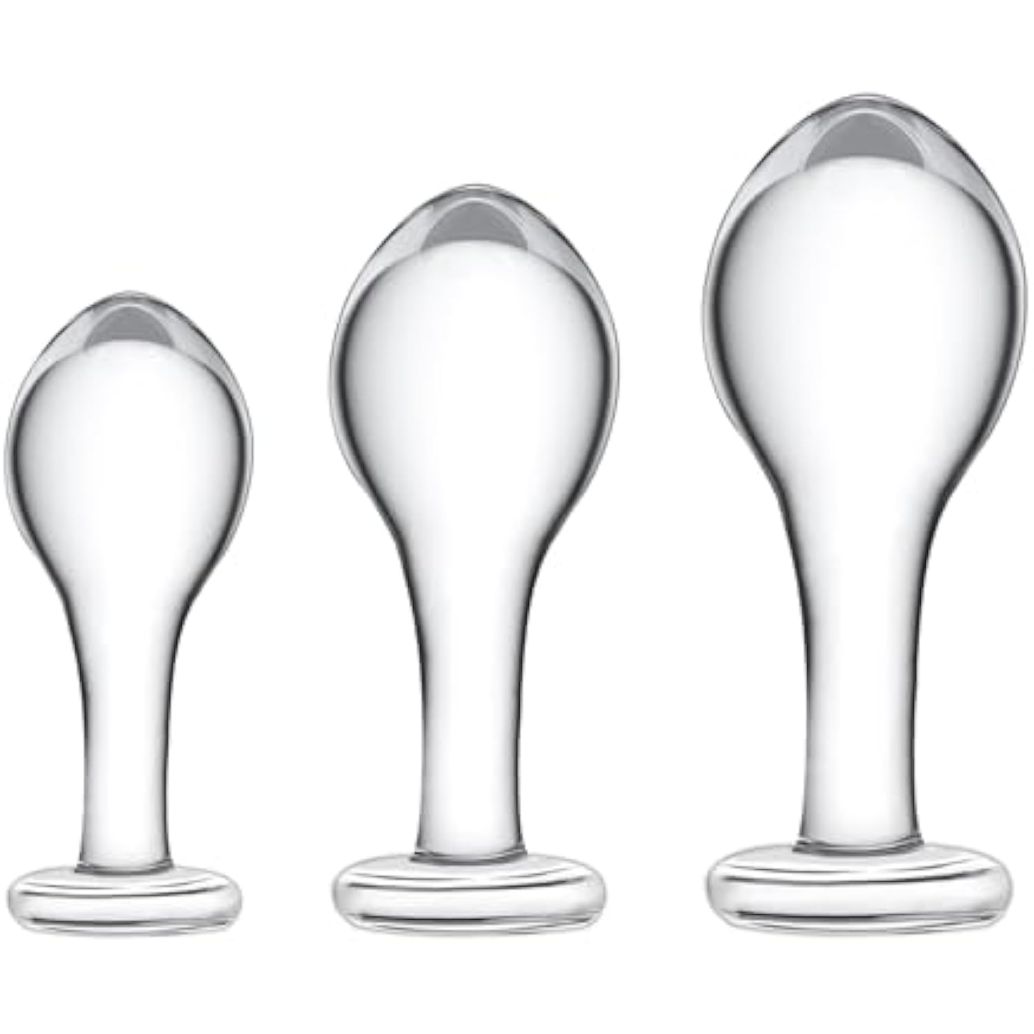 Anal Training Set Glass Anal Plugs With Long Neck 3 Pcs Crystal Anal Butt Plug Adult Sex Toy Suitable For Beginners For Anal Training