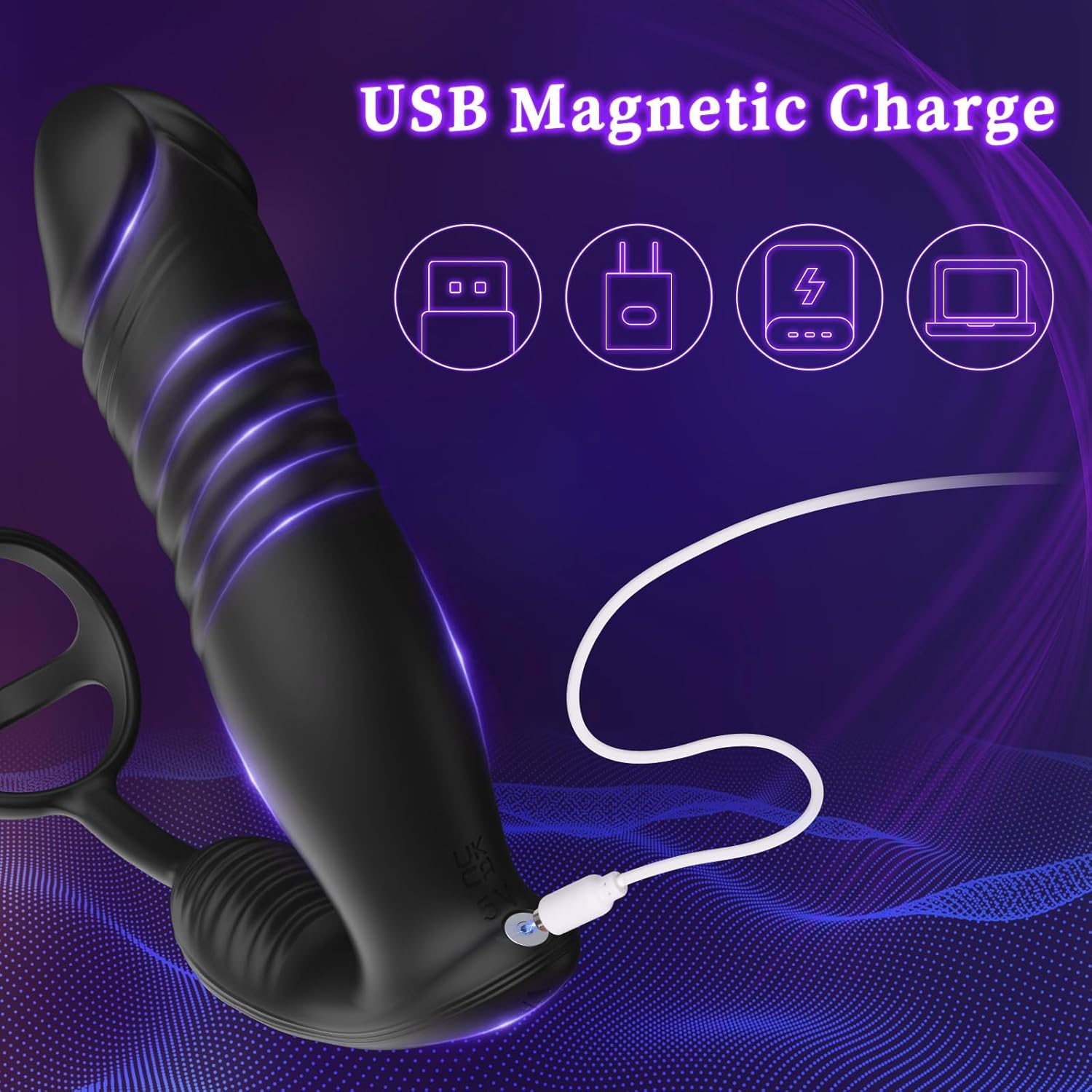 App-Controlled Thrusting Anal Stimulator with Vibrating Ring & Prostate Massager