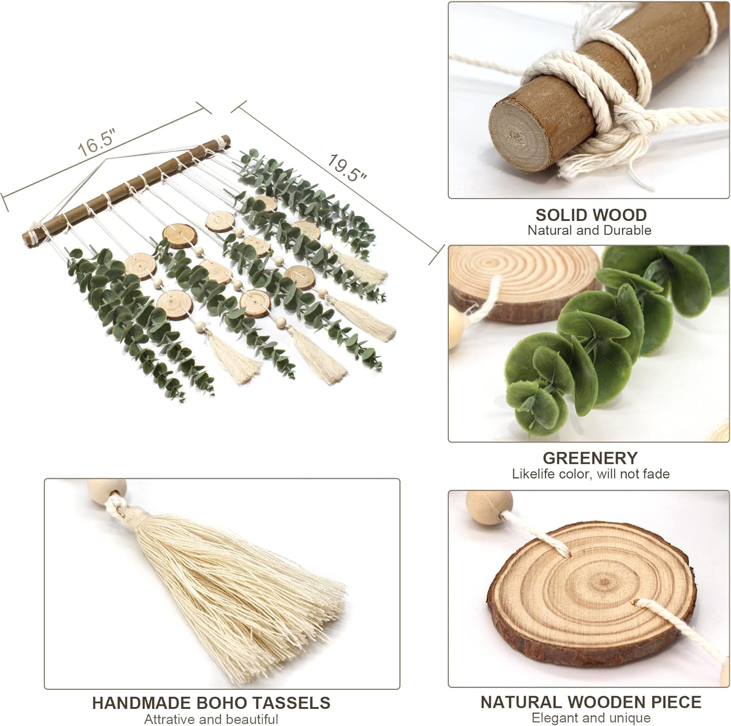 - ăPurely Handmade, Value for the moneyă This eucalyptus wall hanging is pure handmade. No two items are exactly alike, may vary slightly in shape and size due to each detail being carefully hand crafted. Eucalyptus vines, wood slices, beads, handmade tassels are purely hand tied to the branches.