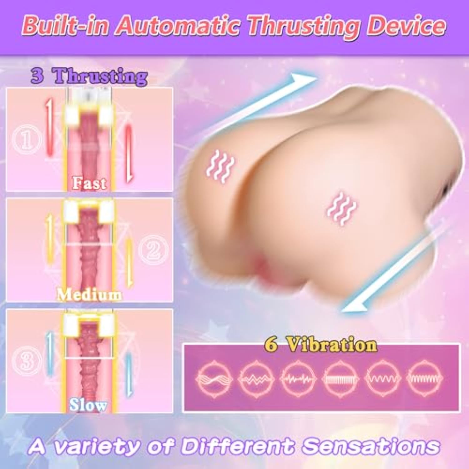 Automatic Male Masturbator 6 Vibrating 3 Thrusting Sex Doll 10.8Lb Big Butt Stroker Pocket Pussy With Deeper Vagina Adult Toys