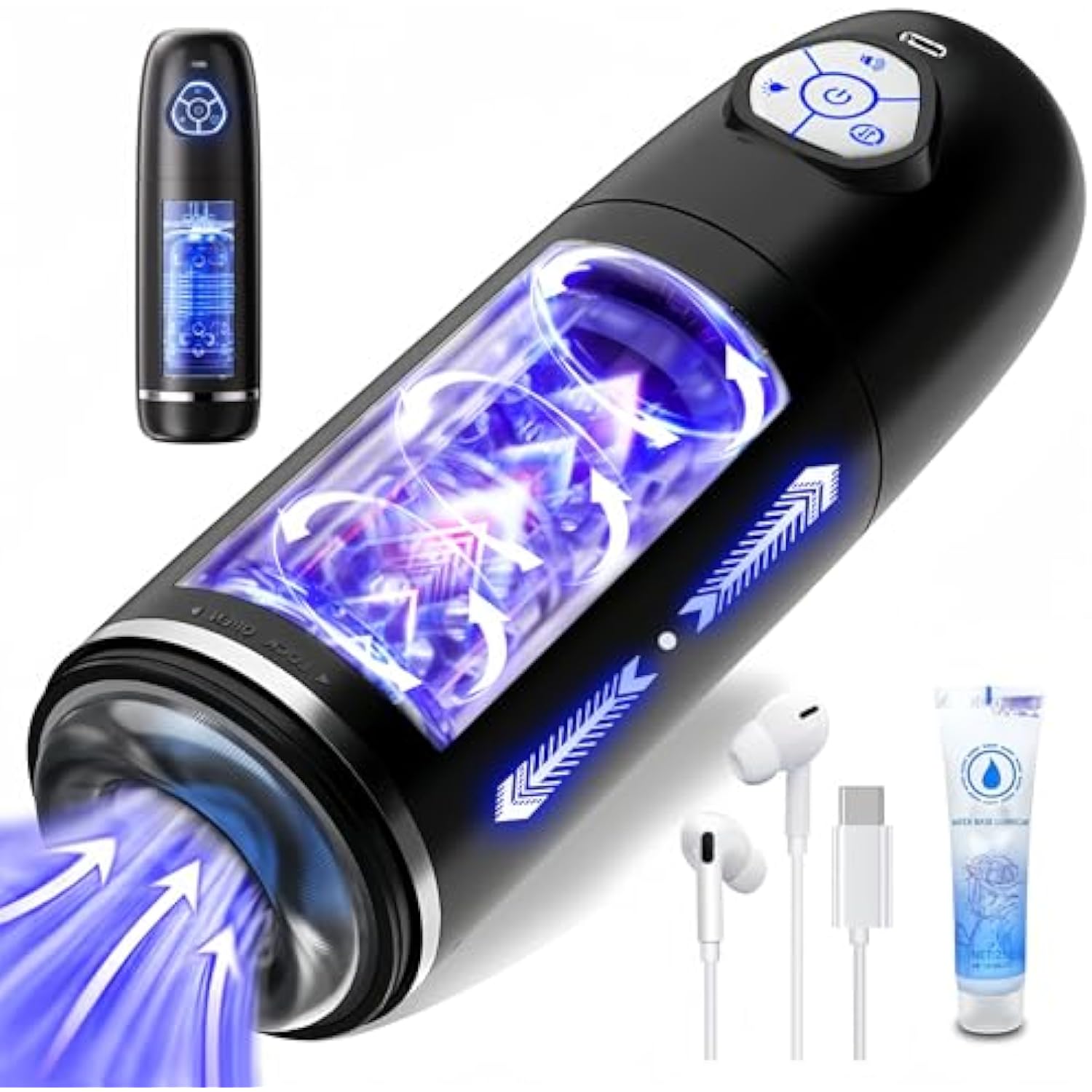Automatic Male Masturbator Penis Pump - Sex Toys For Men With 10 Rotating Thrusting Modes And Female Moaning Voice Pocket Pussy Sucking Vibrator Sex Doll Machine
