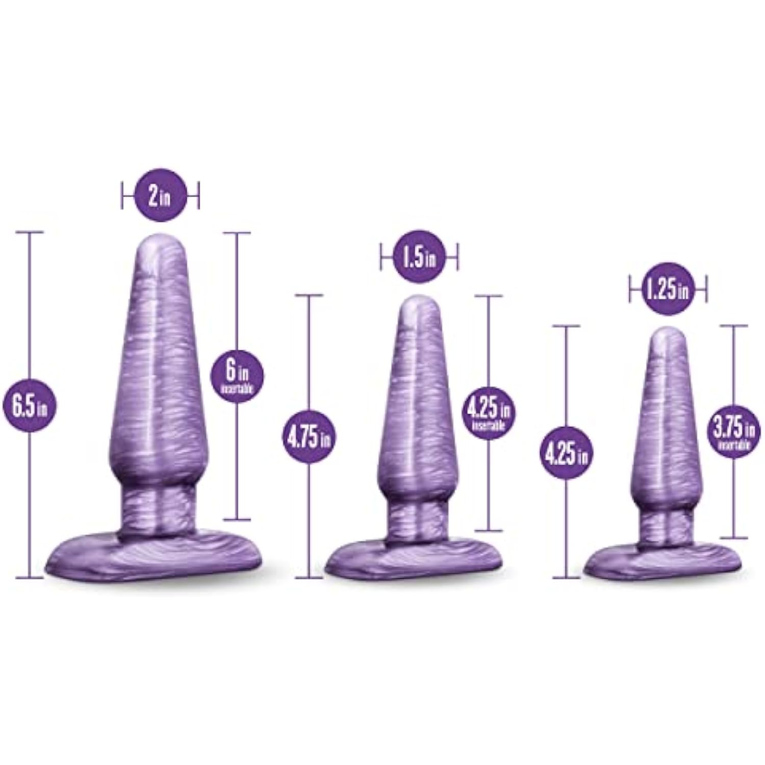 B Yours Anal Trainer Kit Three Sizes Tapered Head Beginners Butt Plug Sex Toy For Men Couples Women Purple Swirl