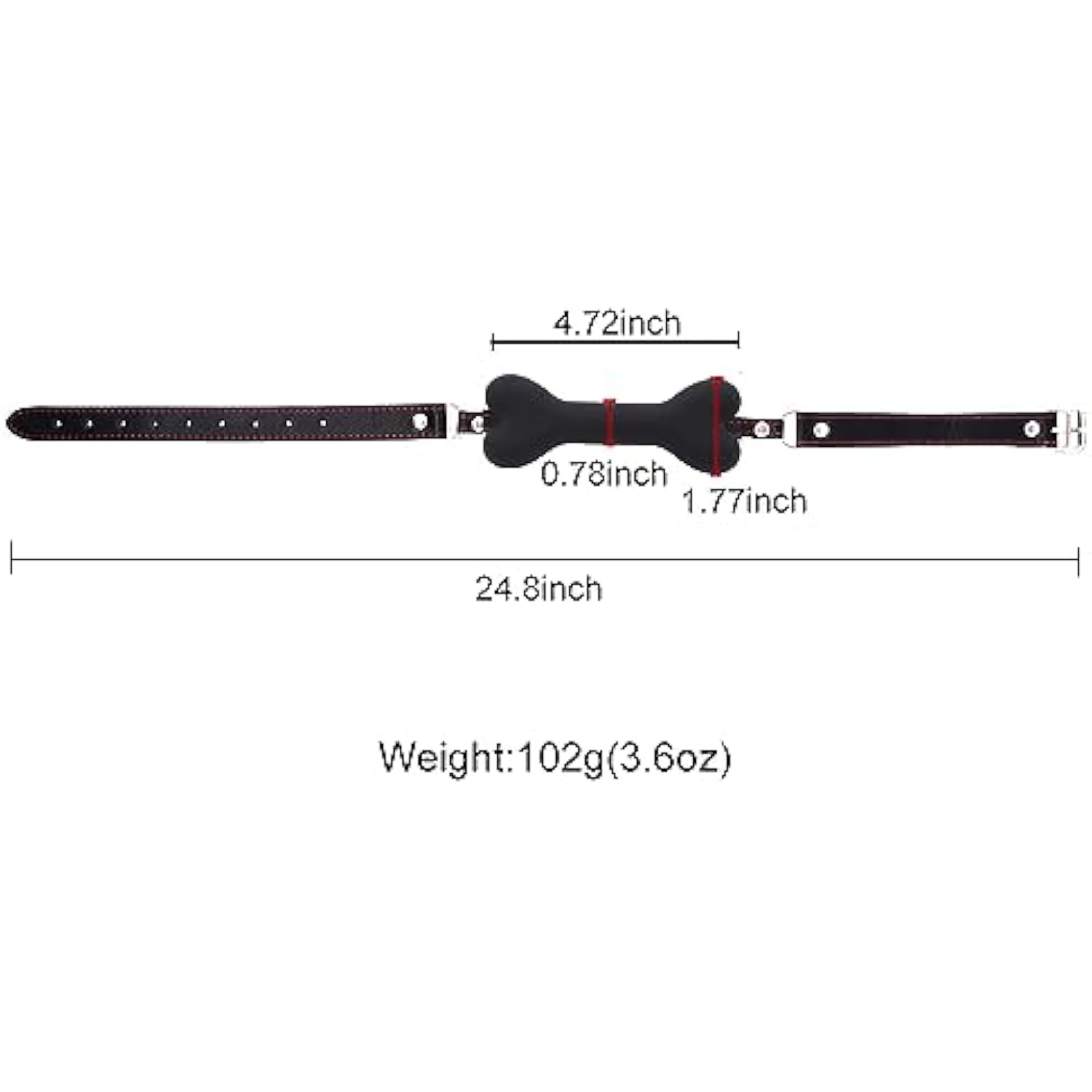 Ball Gag Bondage Silicone Leather Dog Bones Gag Mouth Pet Bone Bite Mouth Gag Bdsm Fetish Slave Restraints Sex Toys (Black)