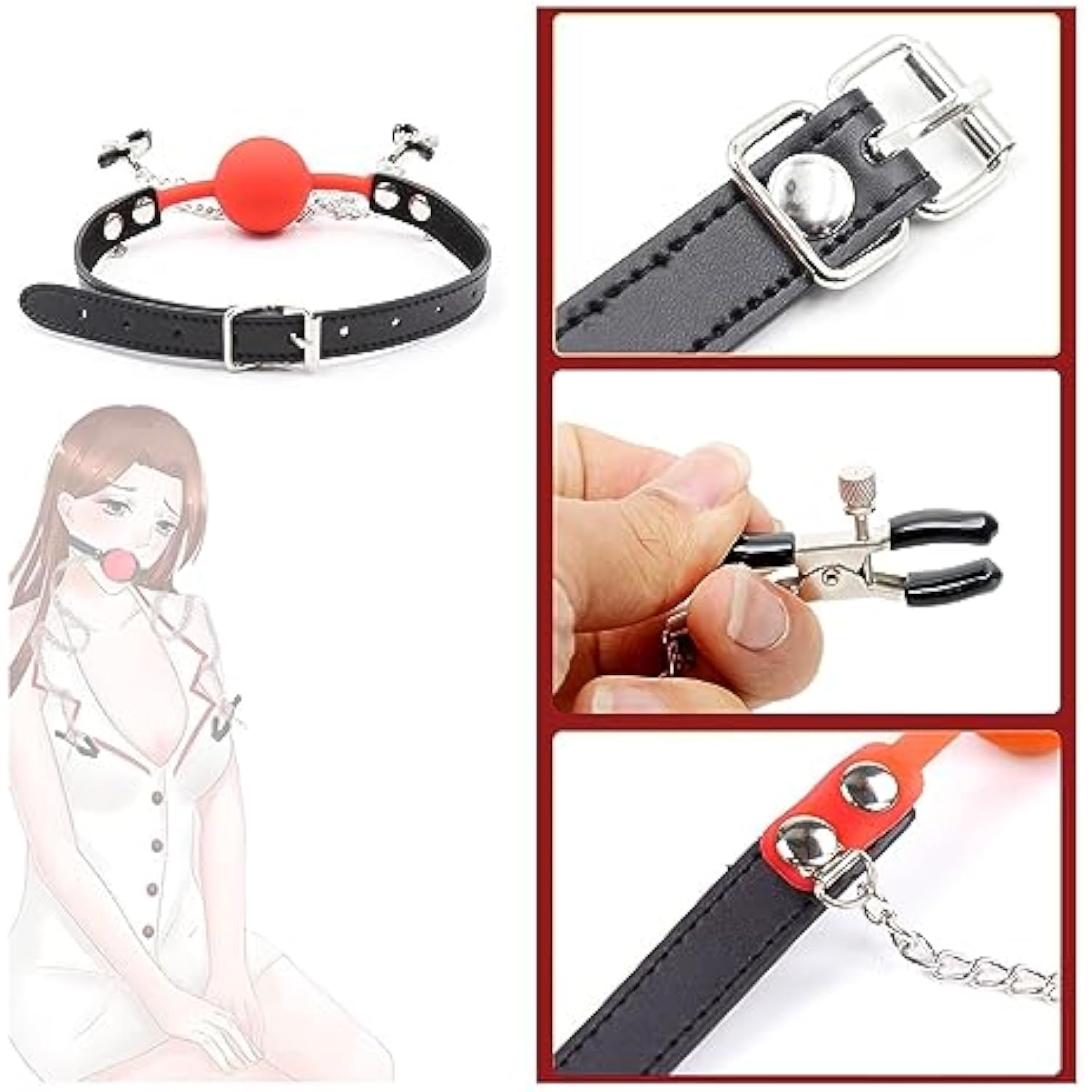 - ??[Material] Gag For Beginners And Professionals Made Of Skin-Friendly Material, Silicone, Straps Made Of Imitation Leather. Mouth Spreader Sex Toy And Nipple Clamps Easy To Use As Erotic Toys, It Brings More Excitement And Triggers Your Sexual Desire.