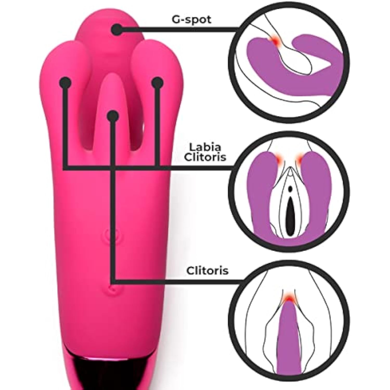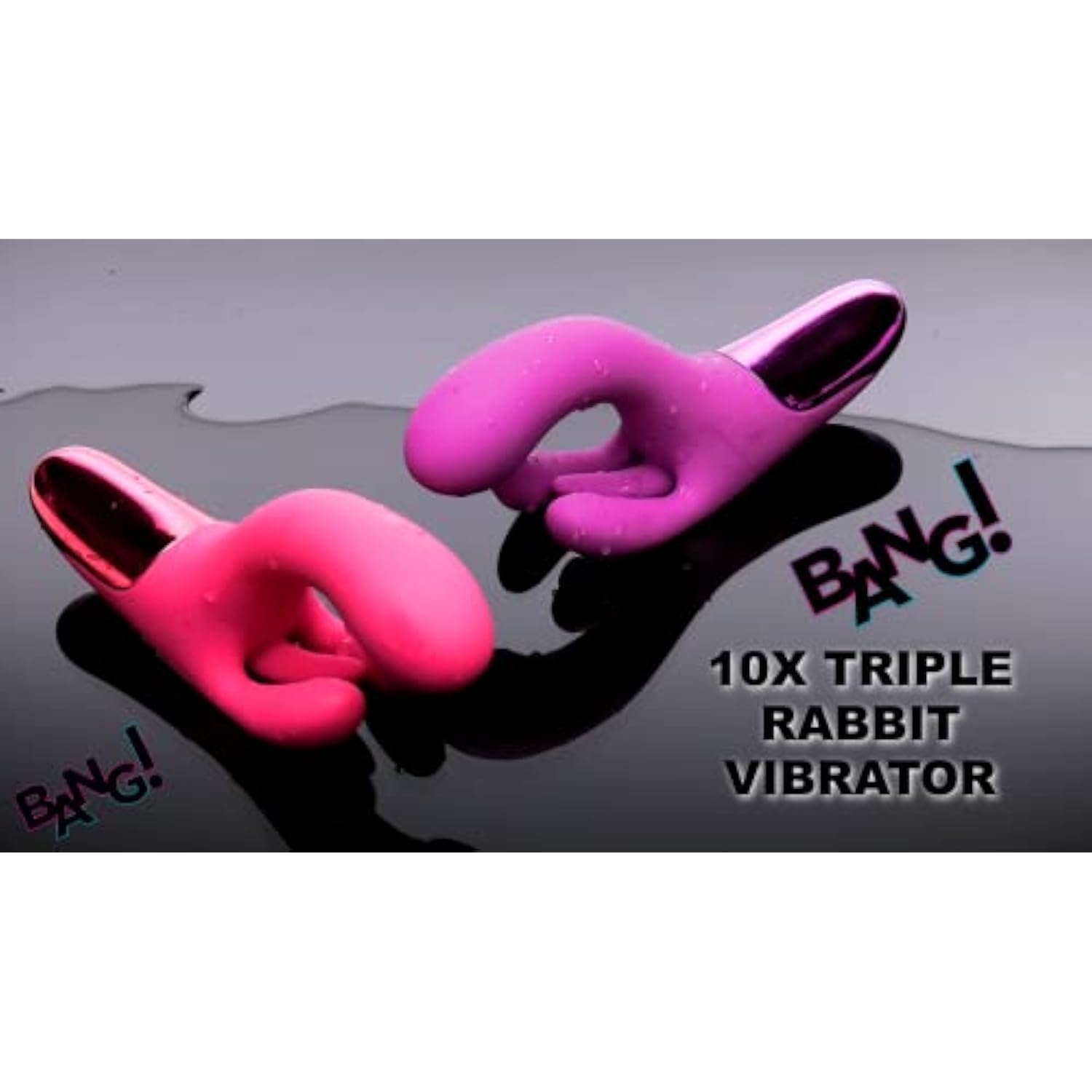 Bang! 10X Triple Motor Rabbit G-Spot Vibrator For Women. Sex Toys For Female Pleasure & Toys For Adults. Premium Silicone Vibrating Stimulator, Waterproof & Rechargeable - Usb Cable Included - Pink