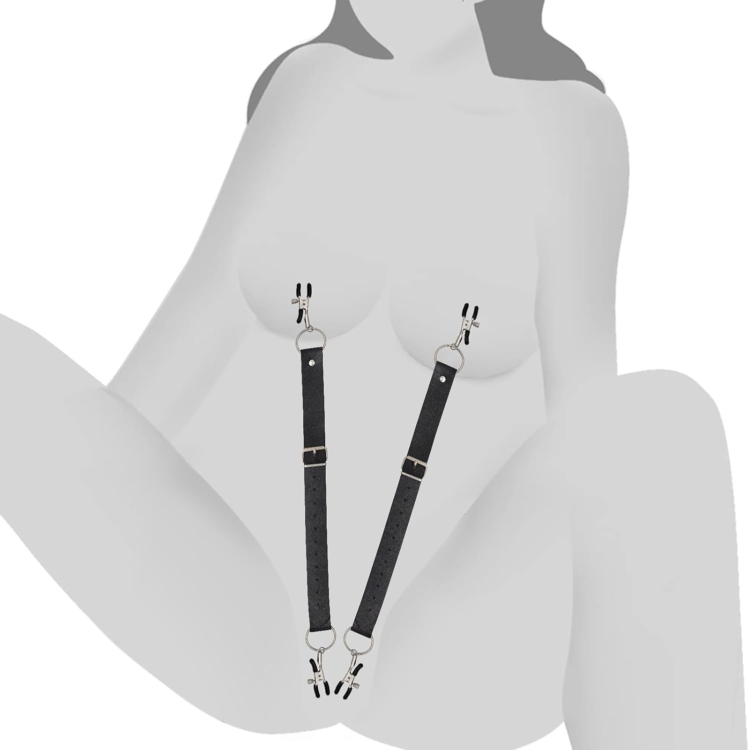 Adjustable Labia Spreader Straps with Clit & Nipple Clamps – BDSM Bondage Set