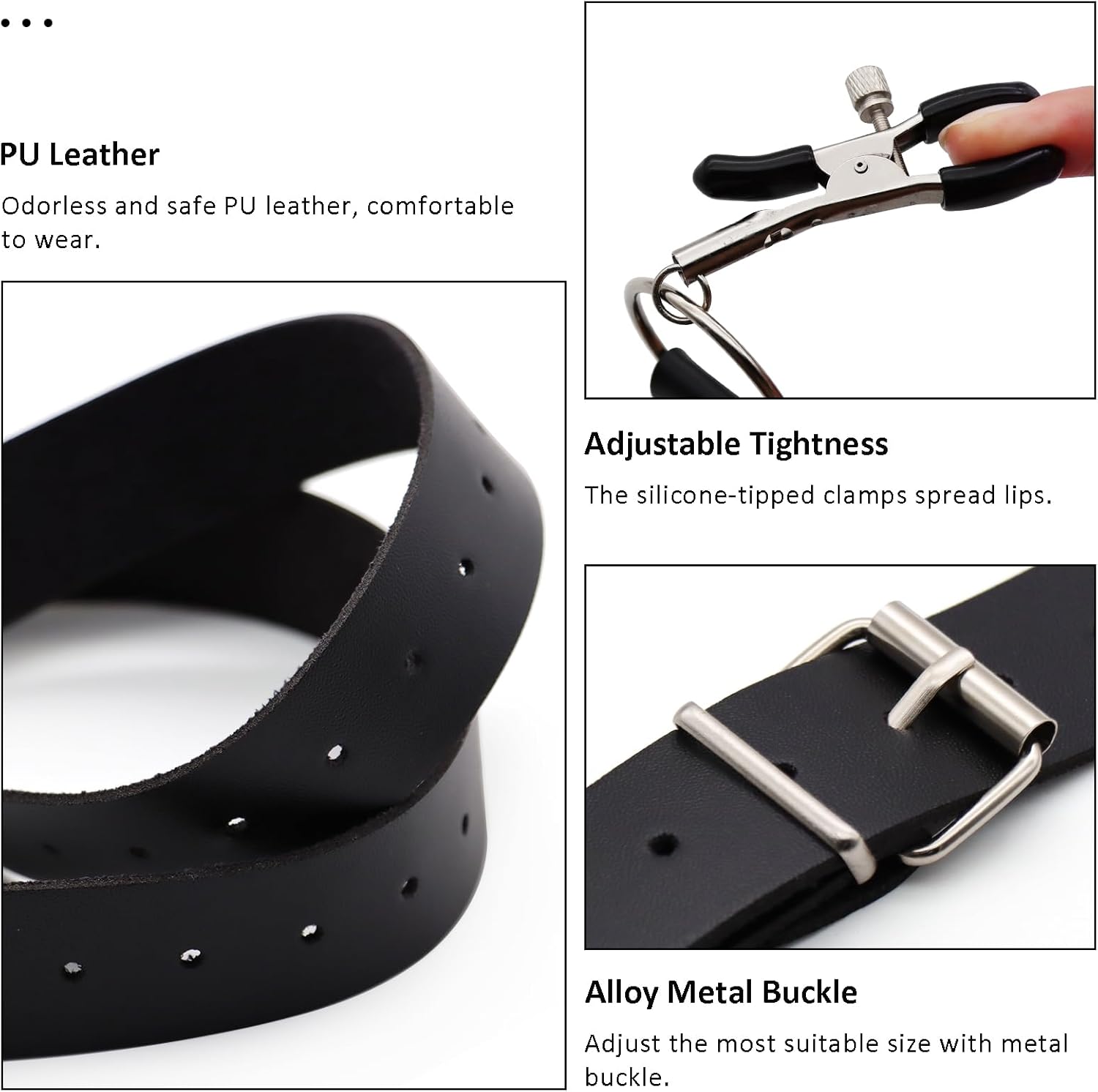 Enhanced Sensory Play: Designed to keep your partner fully exposed, these adjustable spreader straps wrap around the thighs, securing the attached clamps for heightened sensitivity and enhanced pleasure.